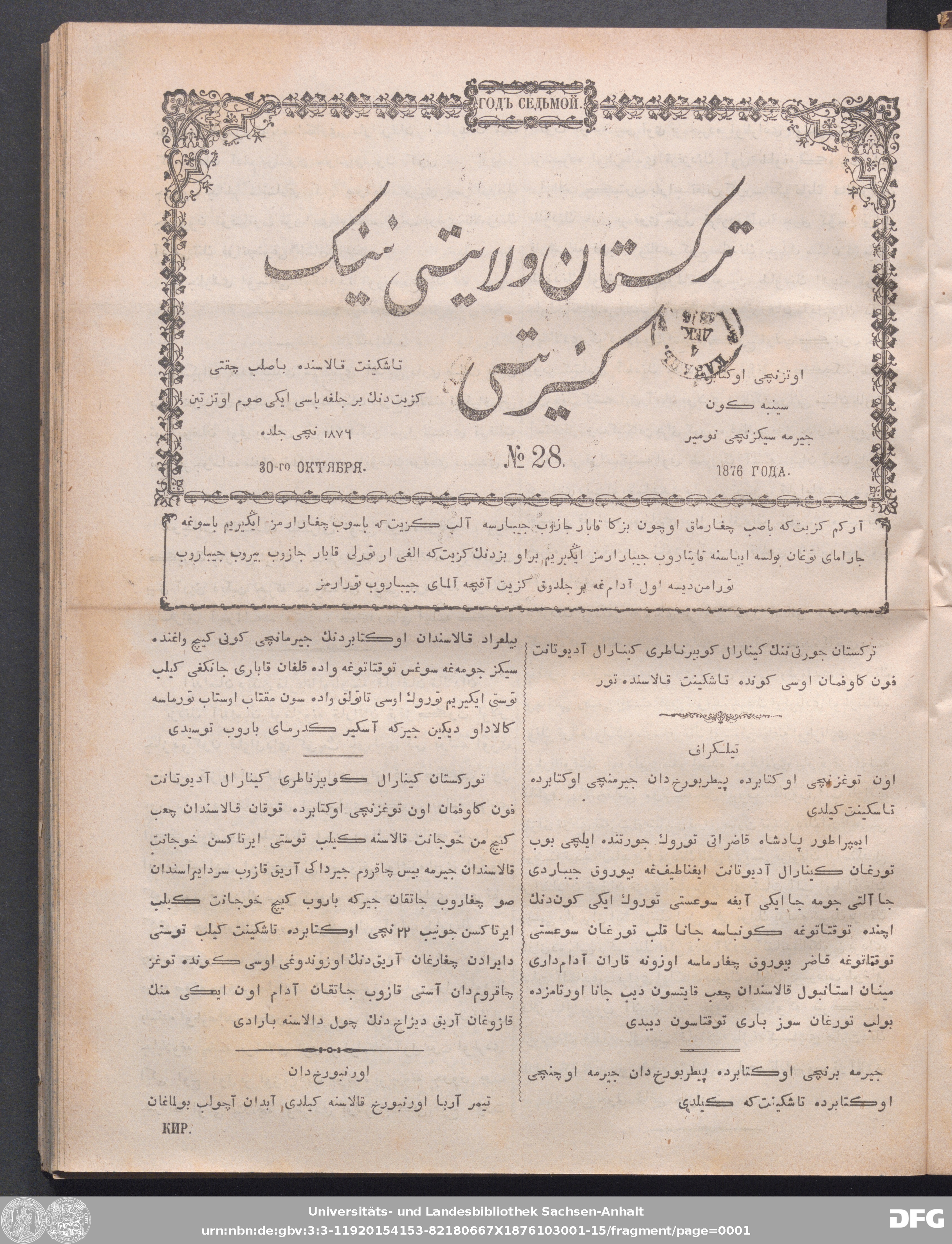 | Published: | Taškend, 1876-10-30 |