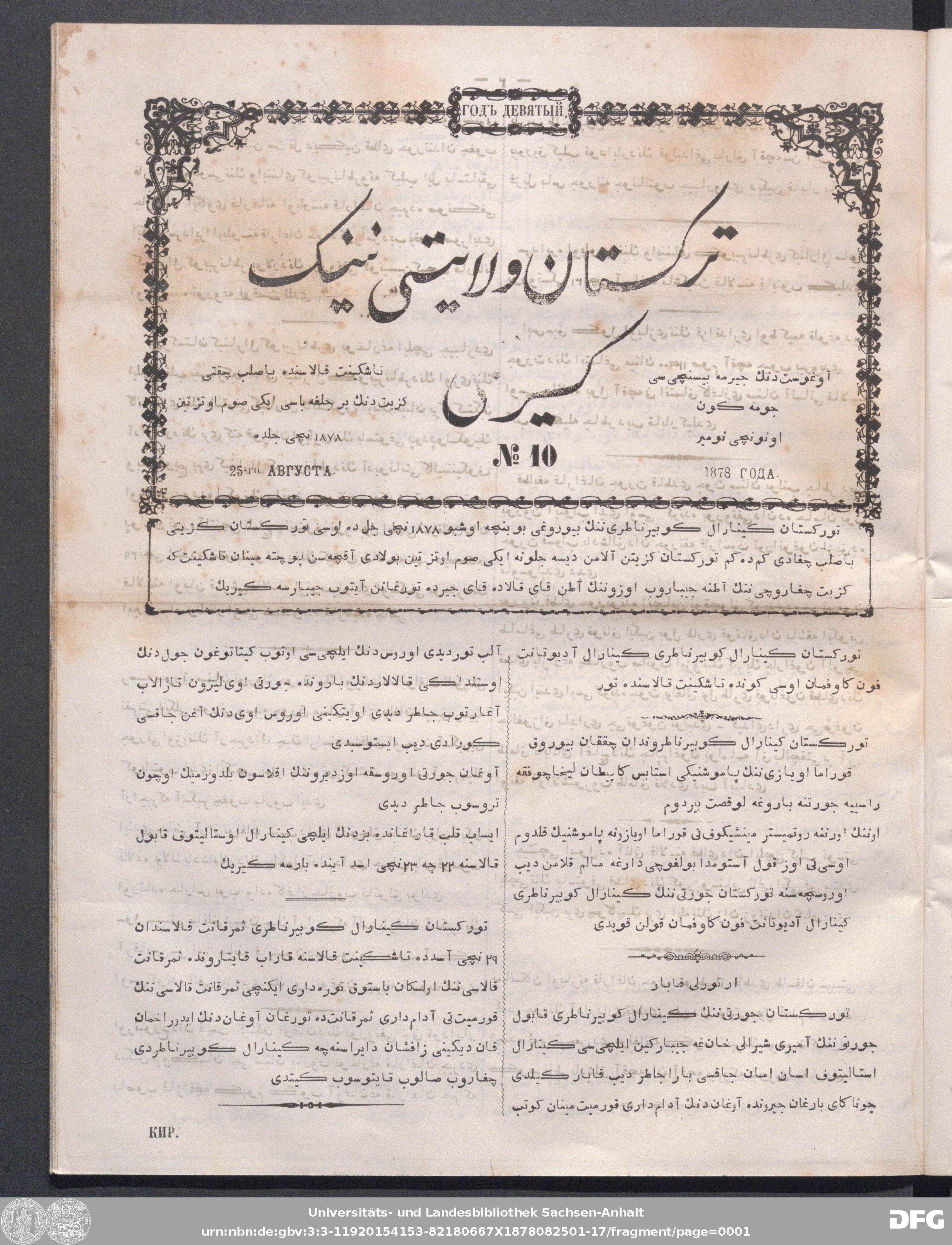 http://dx.doi.org/10.25673/121423| Title: | Turkiston viloyatining gazeti |