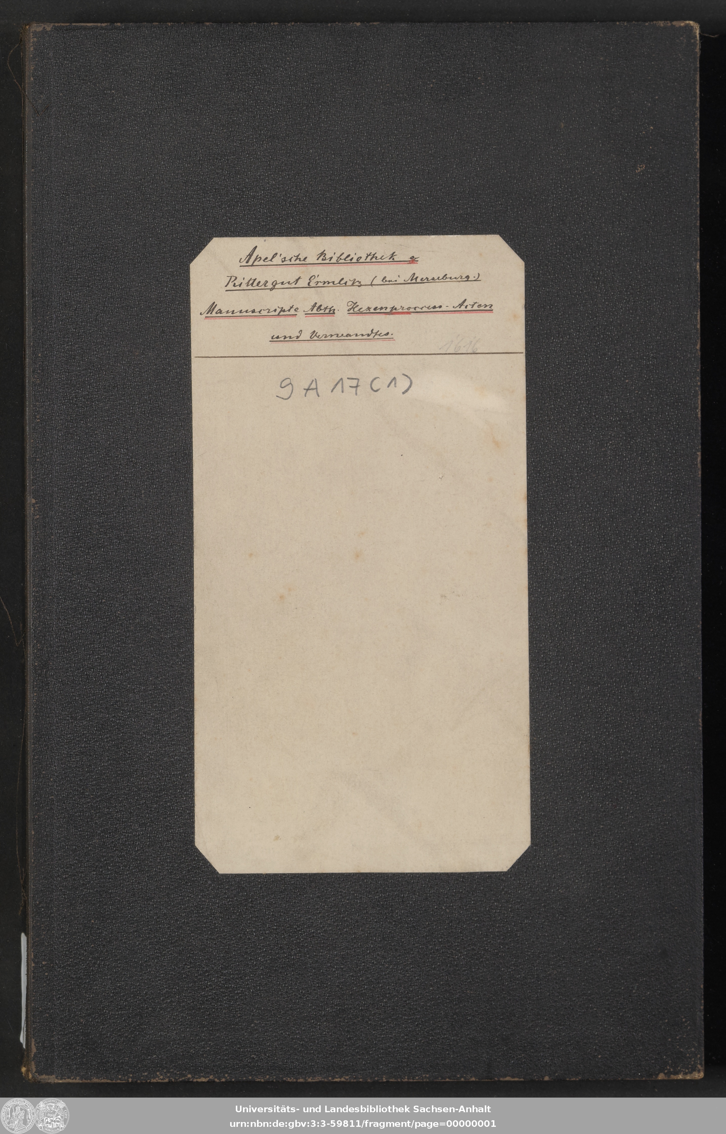 | Original Publication: | Universitäts- und Landesbibliothek Sachsen-Anhalt, 9 A 17 (1) |