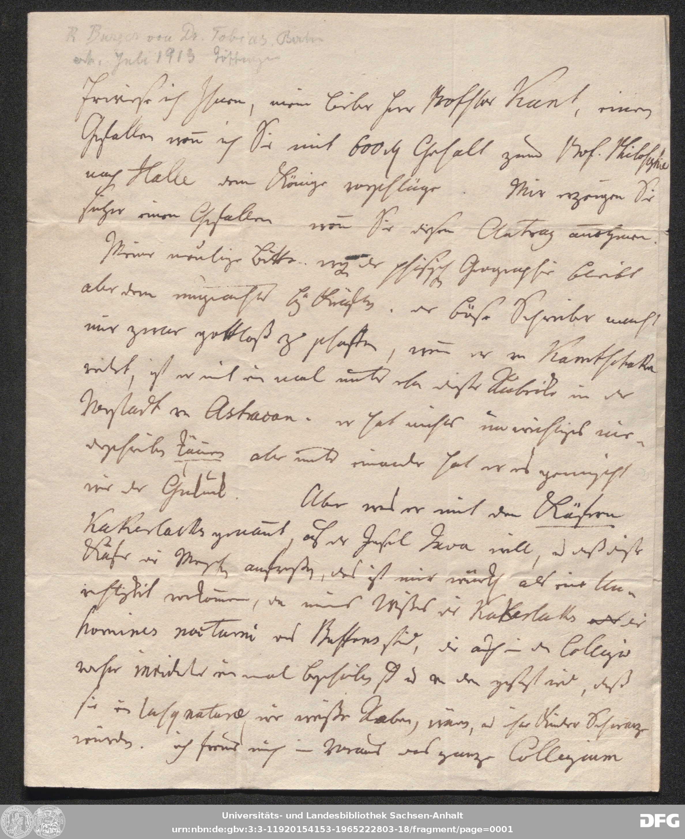 | Addressee: | Kant, Immanuel |