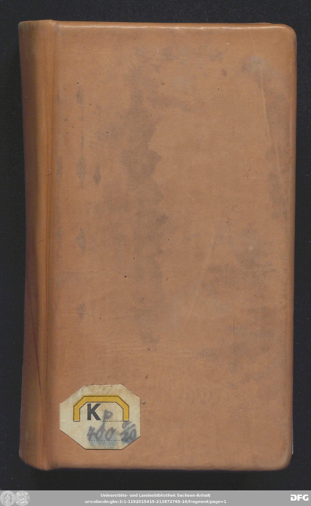| Original Publication: | Universitäts- und Landesbibliothek Sachsen-Anhalt, Kp 400 o/20 |