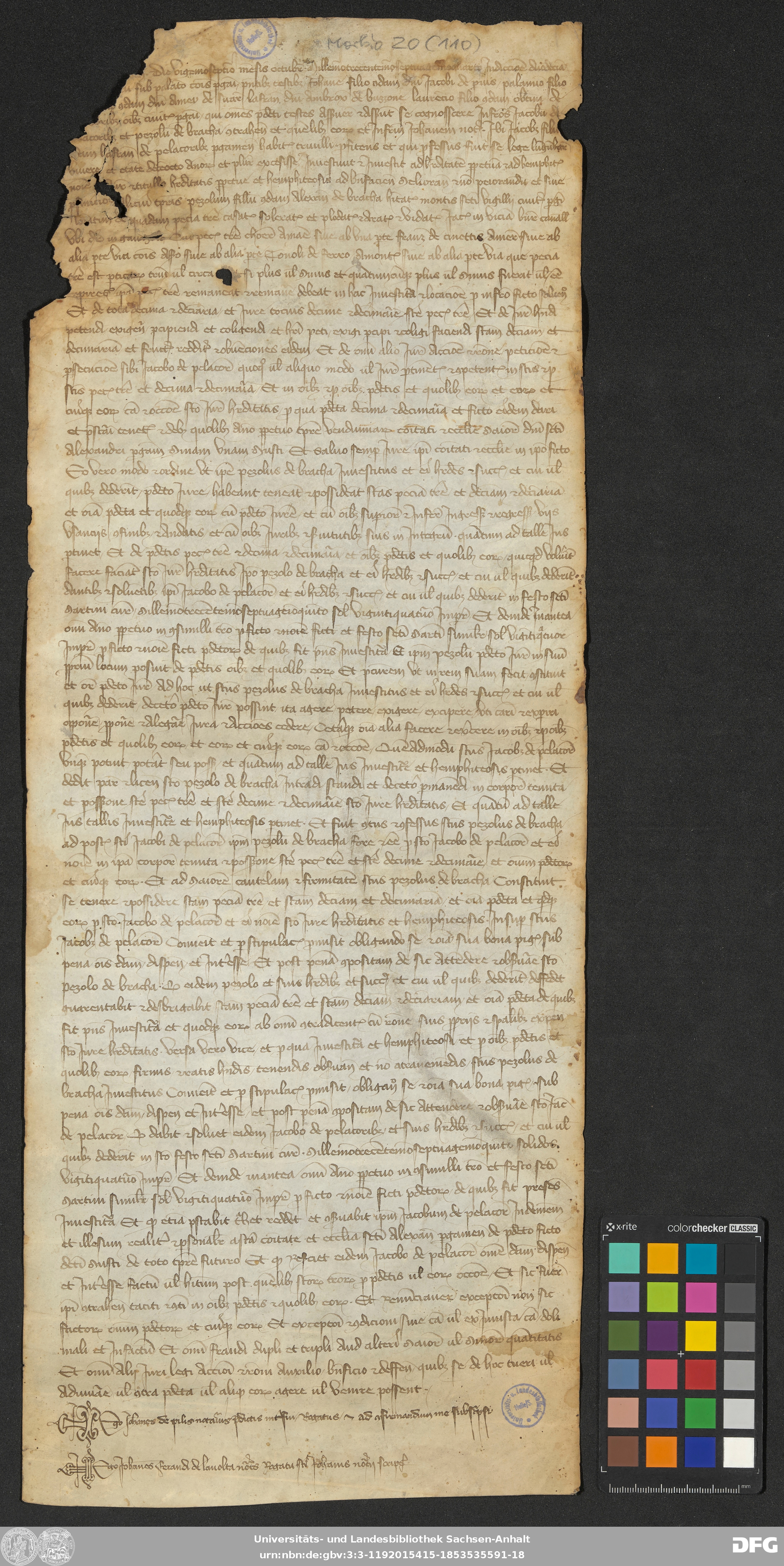 | Annotations: | Handschrift DE-3, GND 2024680-8, Signatur: Morbio 20 (110) Die Illustration ist: Notarszeichen Überlieferungsart: original Beschreibstoff: Pergament Erhaltungszustand: moderat Handschrift Urkunde |