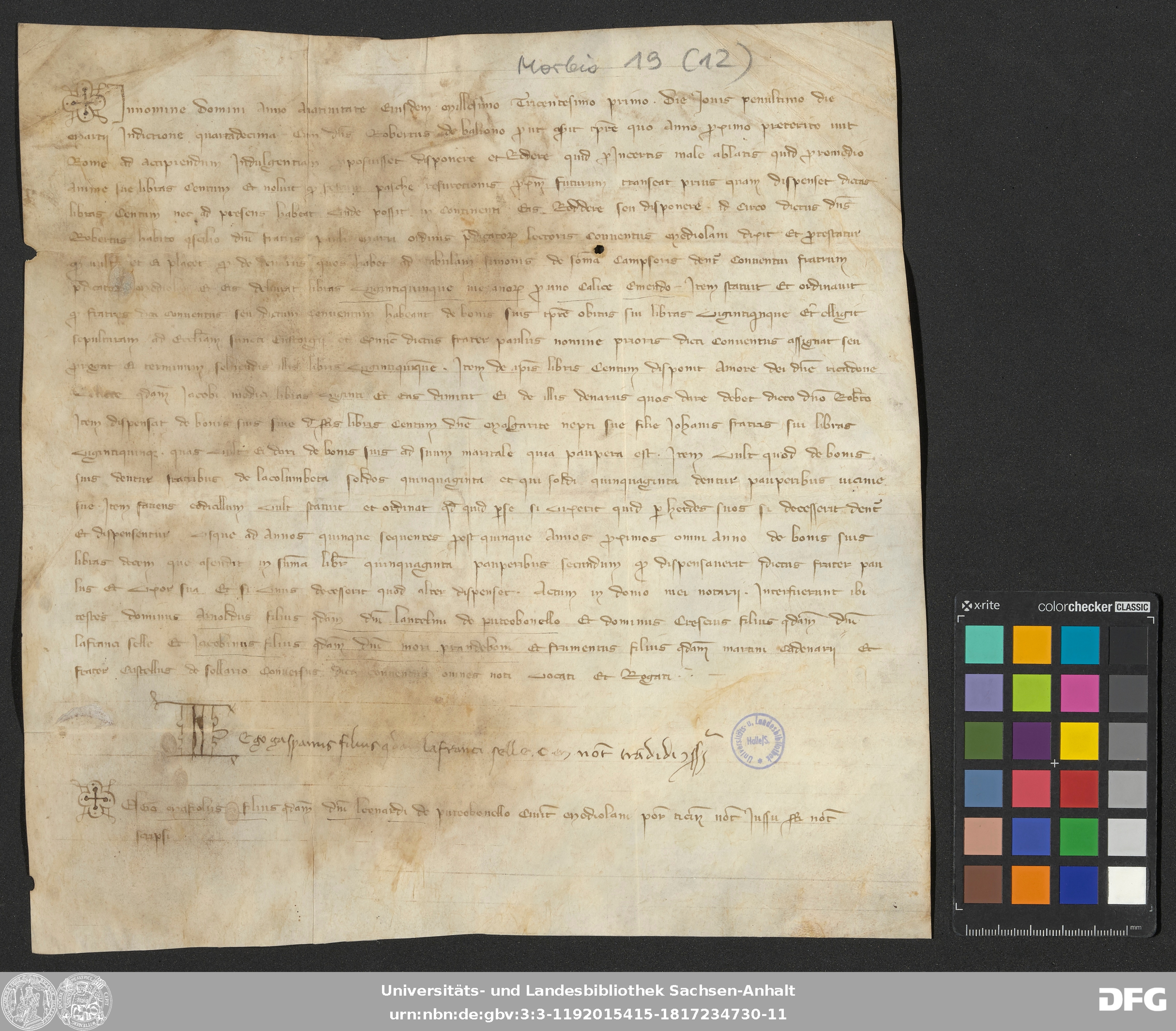 | Series: | Urkunden aus der Sammlung Morbio der Universitäts- und Landesbibliothek Sachsen-Anhalt Halle |