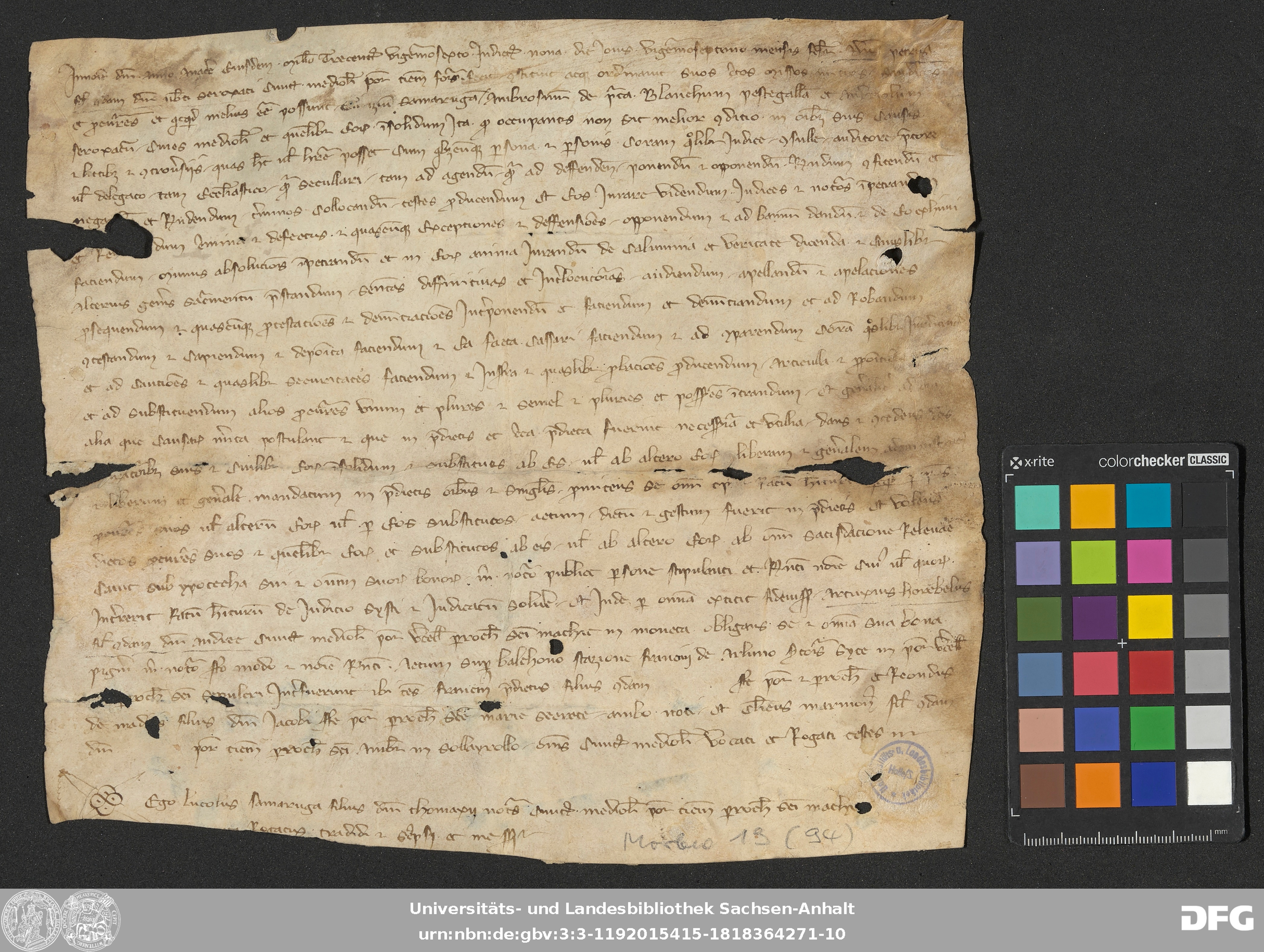 | Annotations: | Handschrift DE-3, GND 2024680-8, Signatur: Morbio 19 (94) Die Illustration ist: Notarszeichen Überlieferungsart: original Beschreibstoff: Pergament Erhaltungszustand: moderat Handschrift Urkunde |