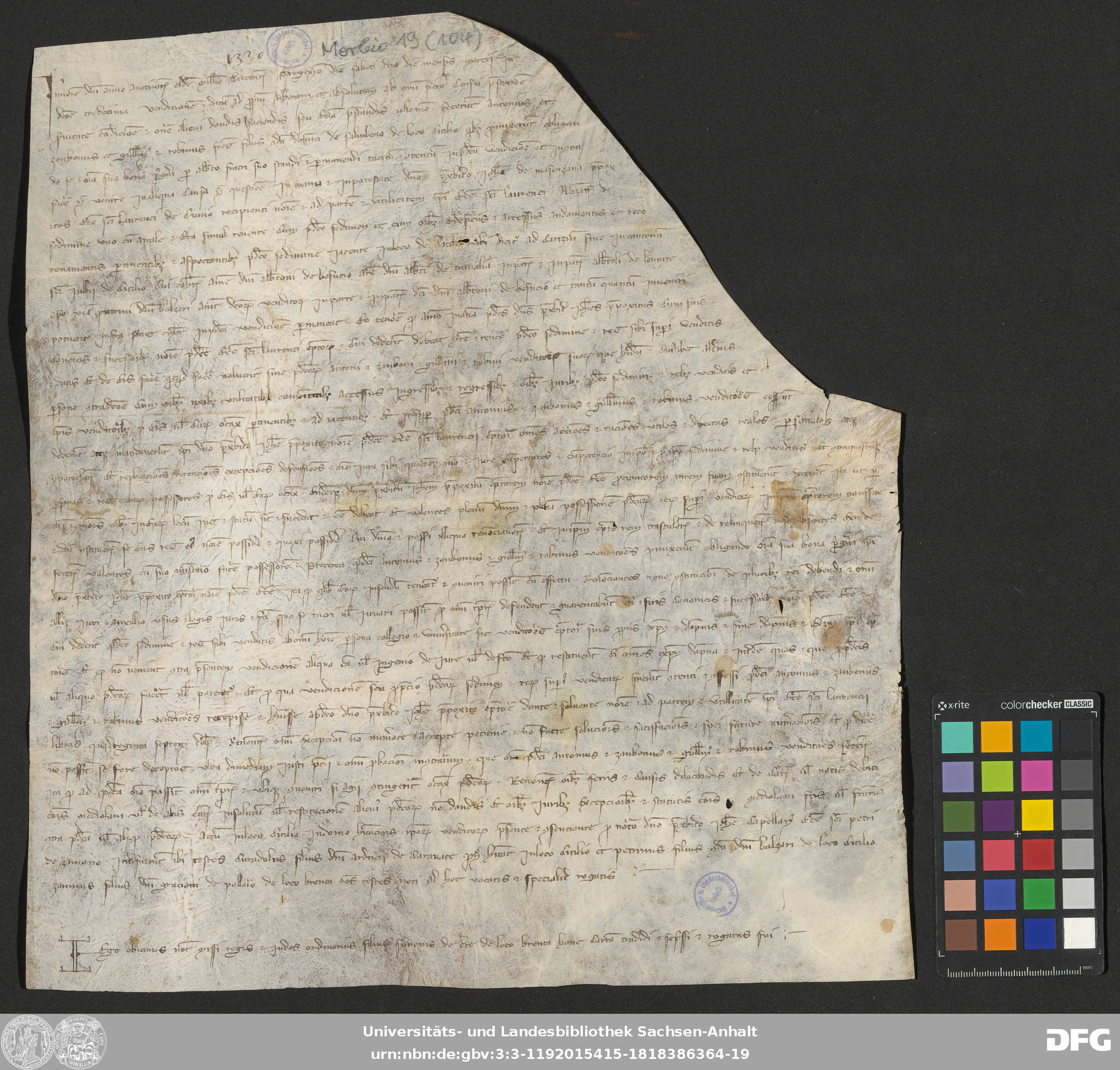 | Series: | Urkunden aus der Sammlung Morbio der Universitäts- und Landesbibliothek Sachsen-Anhalt Halle |