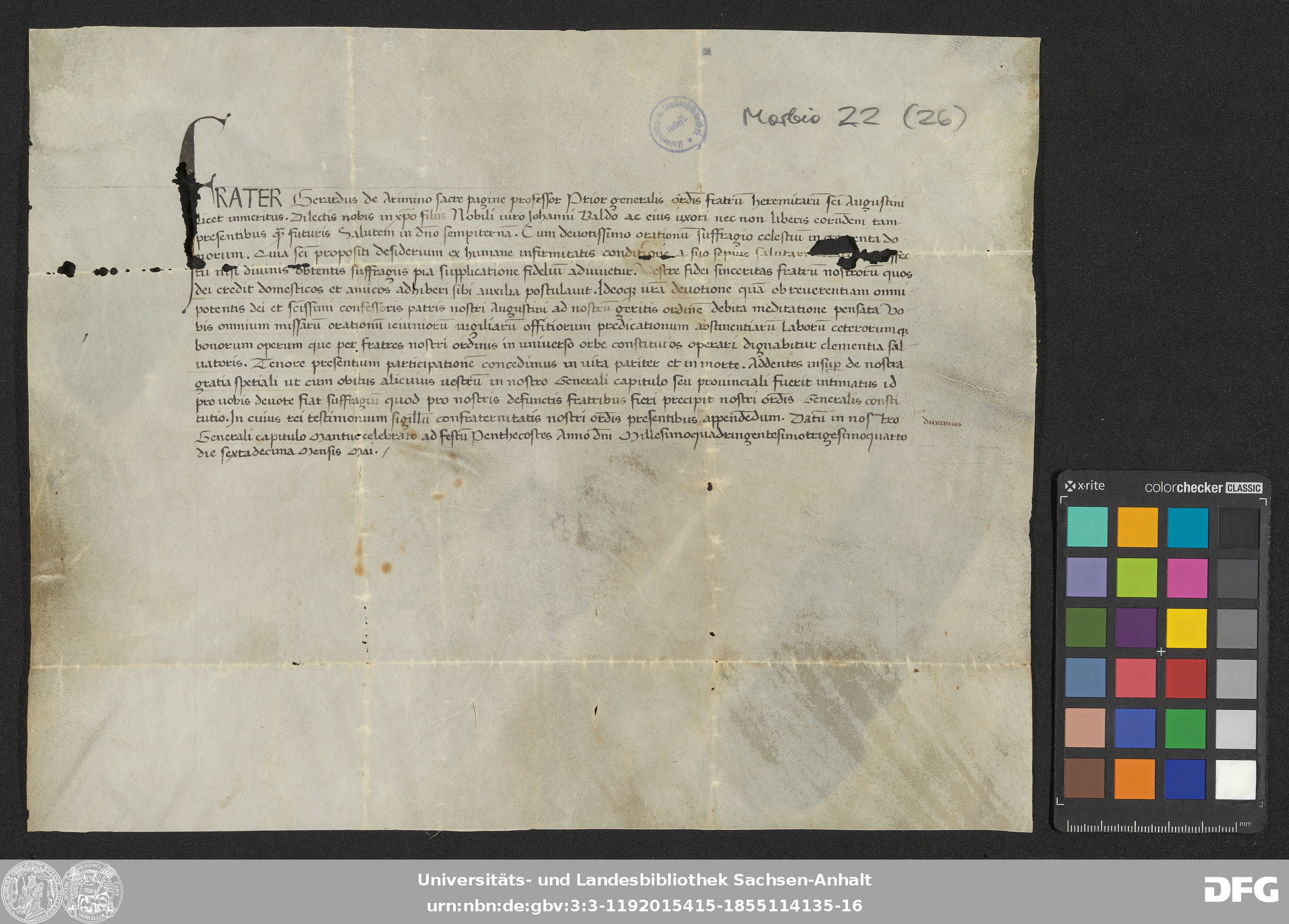 | Series: | Urkunden aus der Sammlung Morbio der Universitäts- und Landesbibliothek Sachsen-Anhalt Halle |