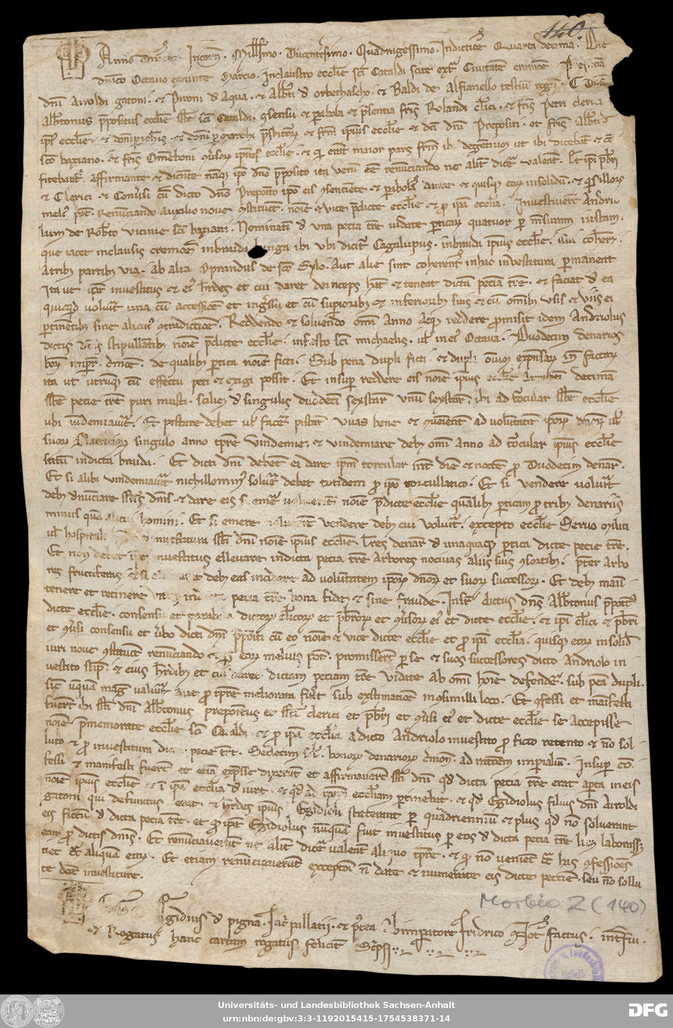 | Series: | Urkunden aus der Sammlung Morbio der Universitäts- und Landesbibliothek Sachsen-Anhalt Halle |