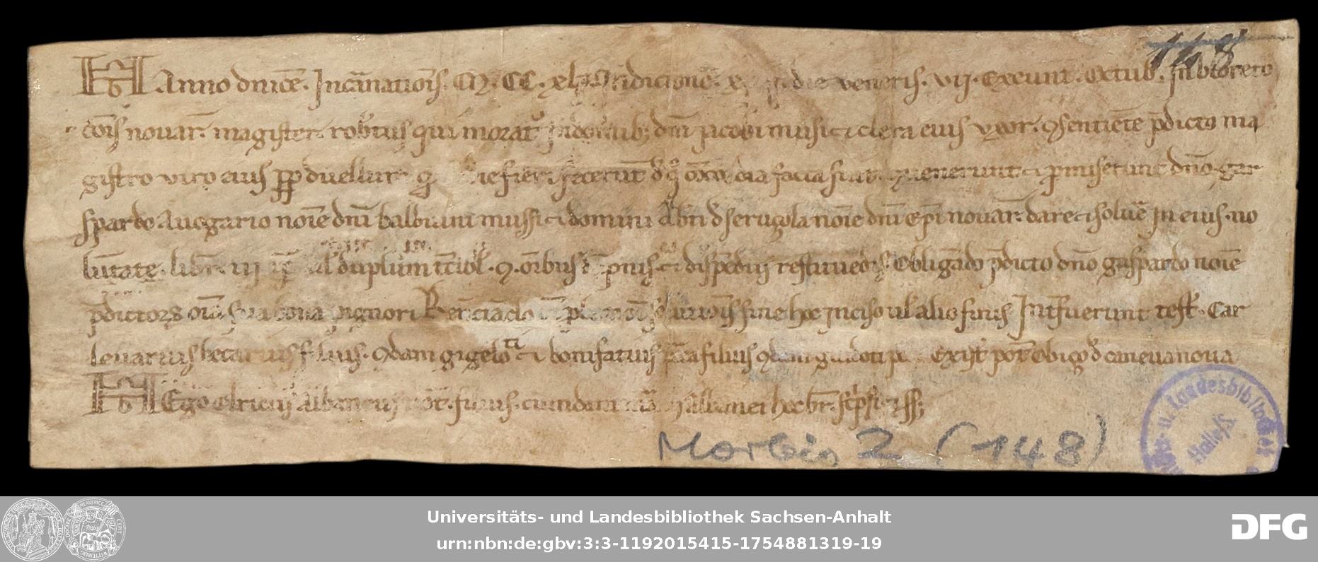 | Series: | Urkunden aus der Sammlung Morbio der Universitäts- und Landesbibliothek Sachsen-Anhalt Halle |