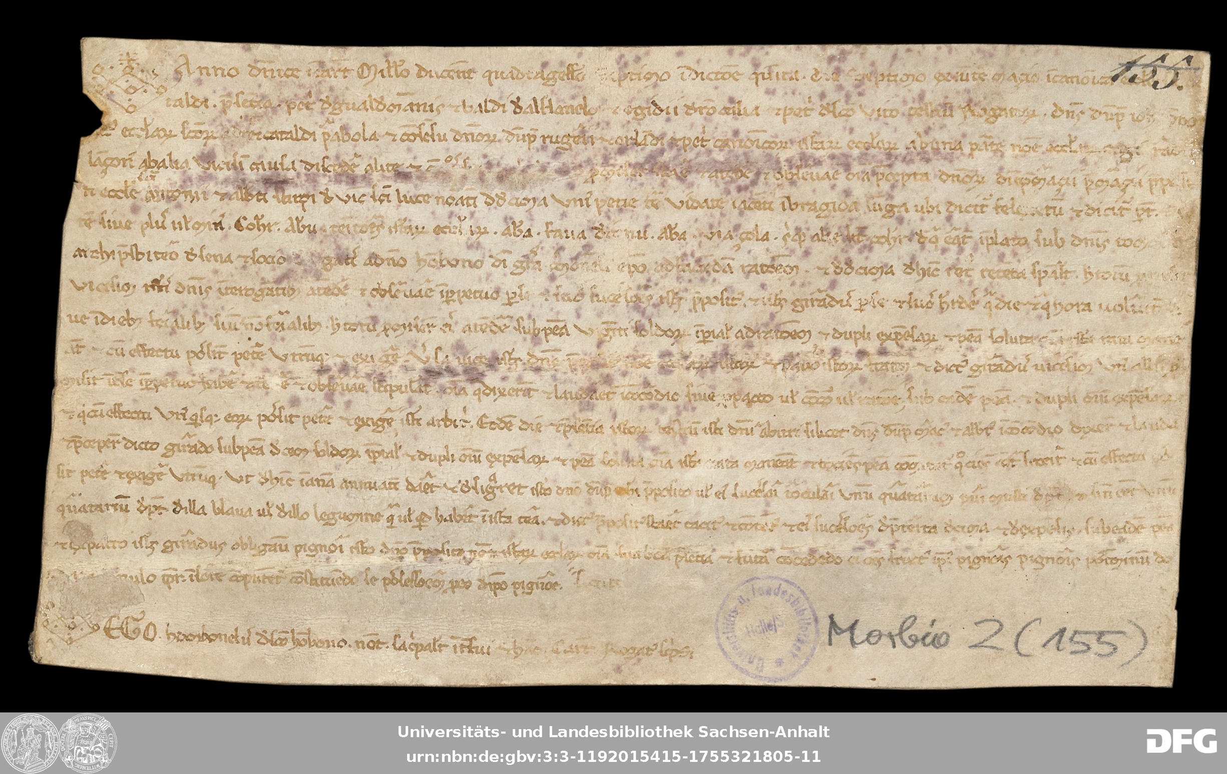 | Series: | Urkunden aus der Sammlung Morbio der Universitäts- und Landesbibliothek Sachsen-Anhalt Halle |