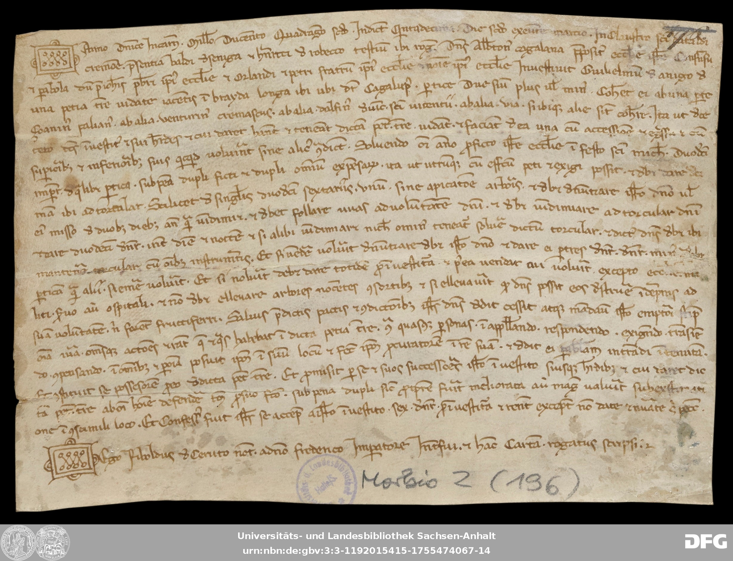 | Series: | Urkunden aus der Sammlung Morbio der Universitäts- und Landesbibliothek Sachsen-Anhalt Halle |