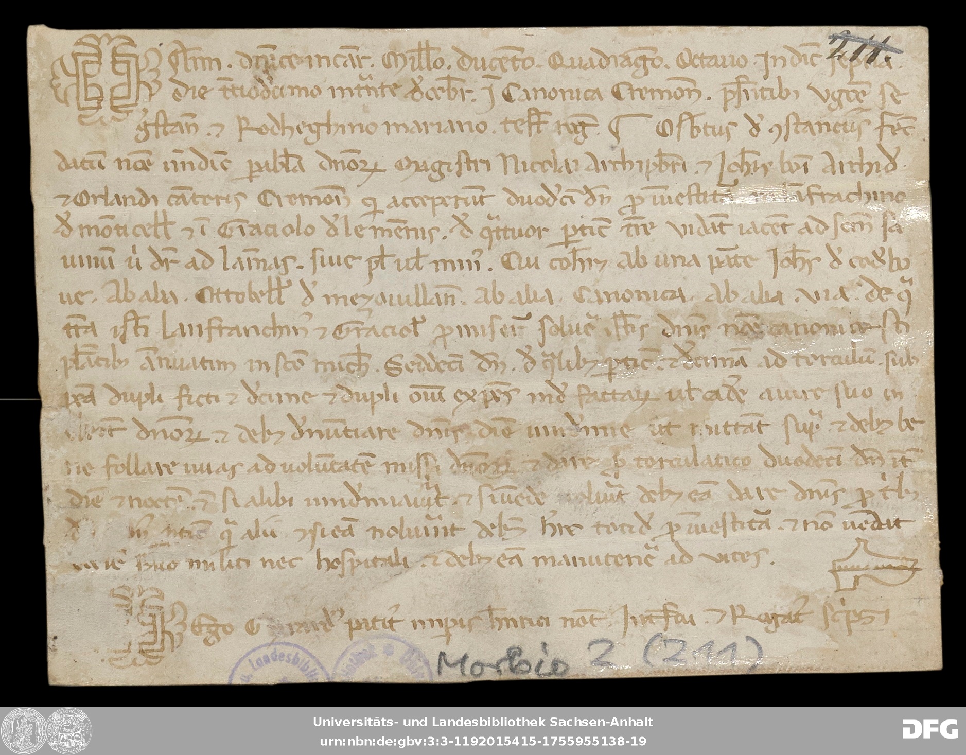 | Series: | Urkunden aus der Sammlung Morbio der Universitäts- und Landesbibliothek Sachsen-Anhalt Halle |