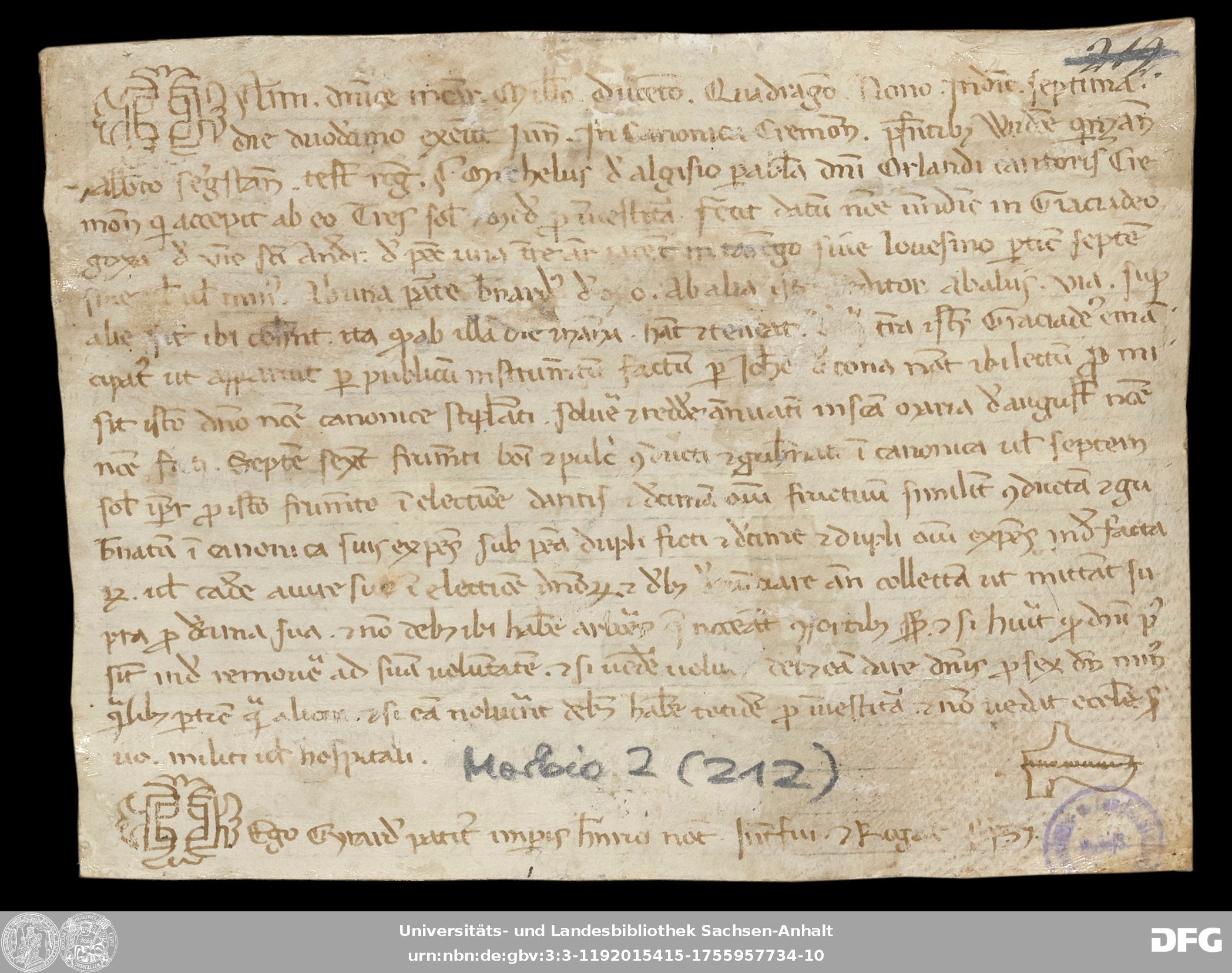 | Series: | Urkunden aus der Sammlung Morbio der Universitäts- und Landesbibliothek Sachsen-Anhalt Halle |