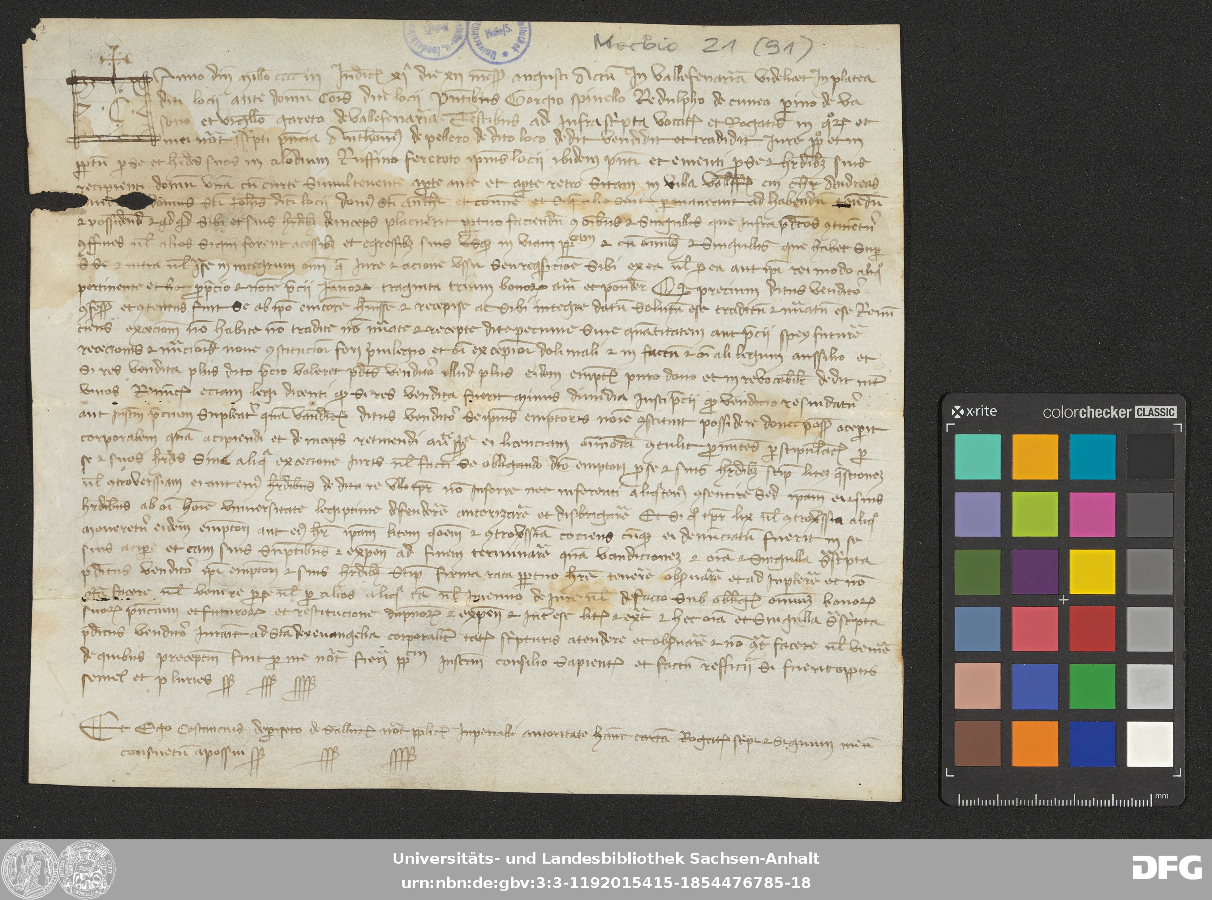 | Series: | Urkunden aus der Sammlung Morbio der Universitäts- und Landesbibliothek Sachsen-Anhalt Halle |