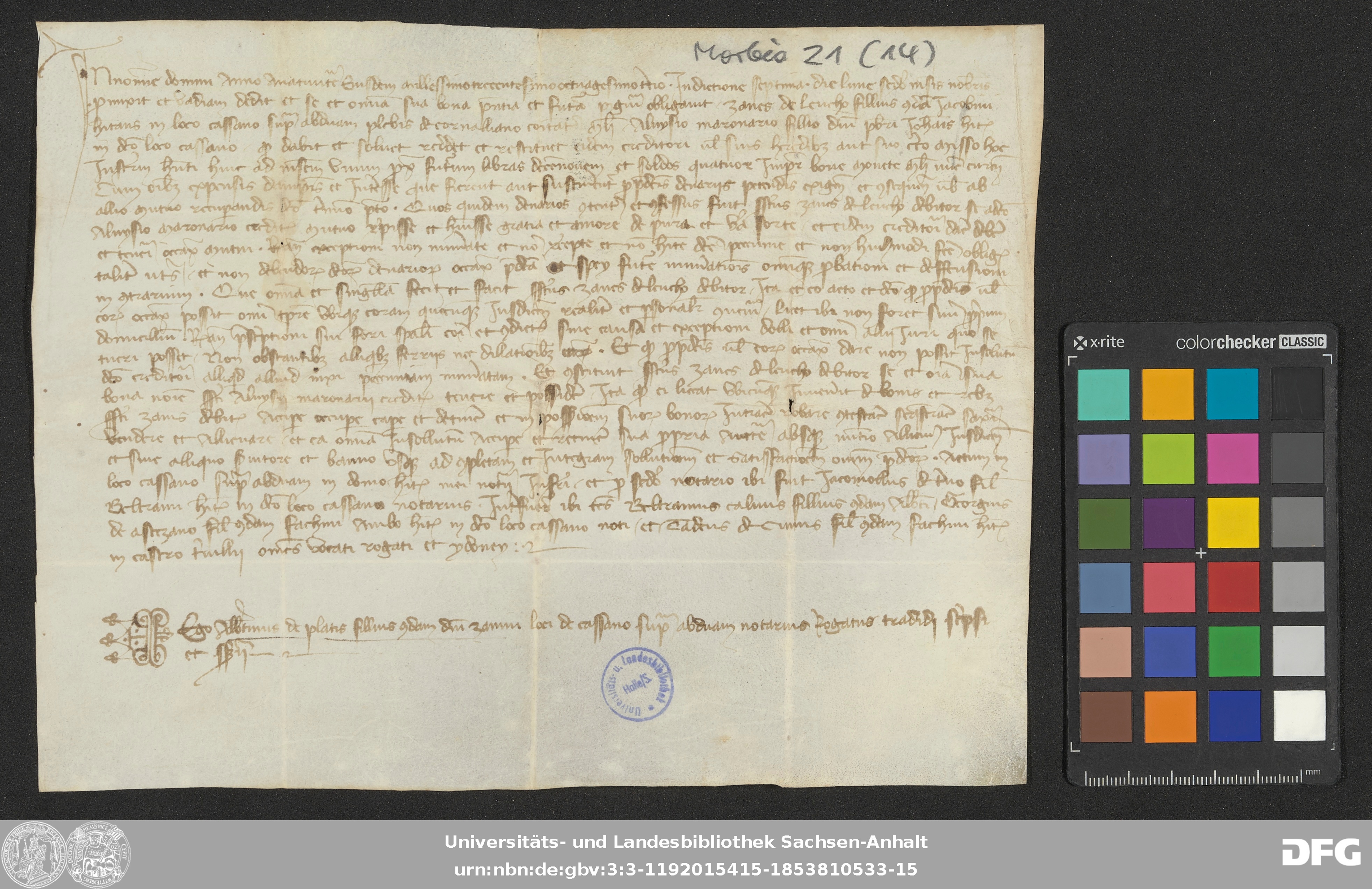 | Series: | Urkunden aus der Sammlung Morbio der Universitäts- und Landesbibliothek Sachsen-Anhalt Halle |
