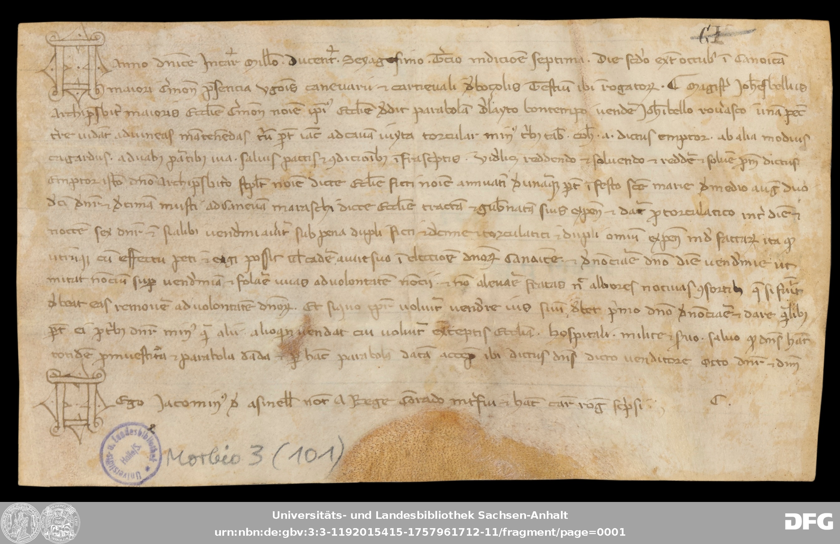 | Series: | Urkunden aus der Sammlung Morbio der Universitäts- und Landesbibliothek Sachsen-Anhalt Halle |