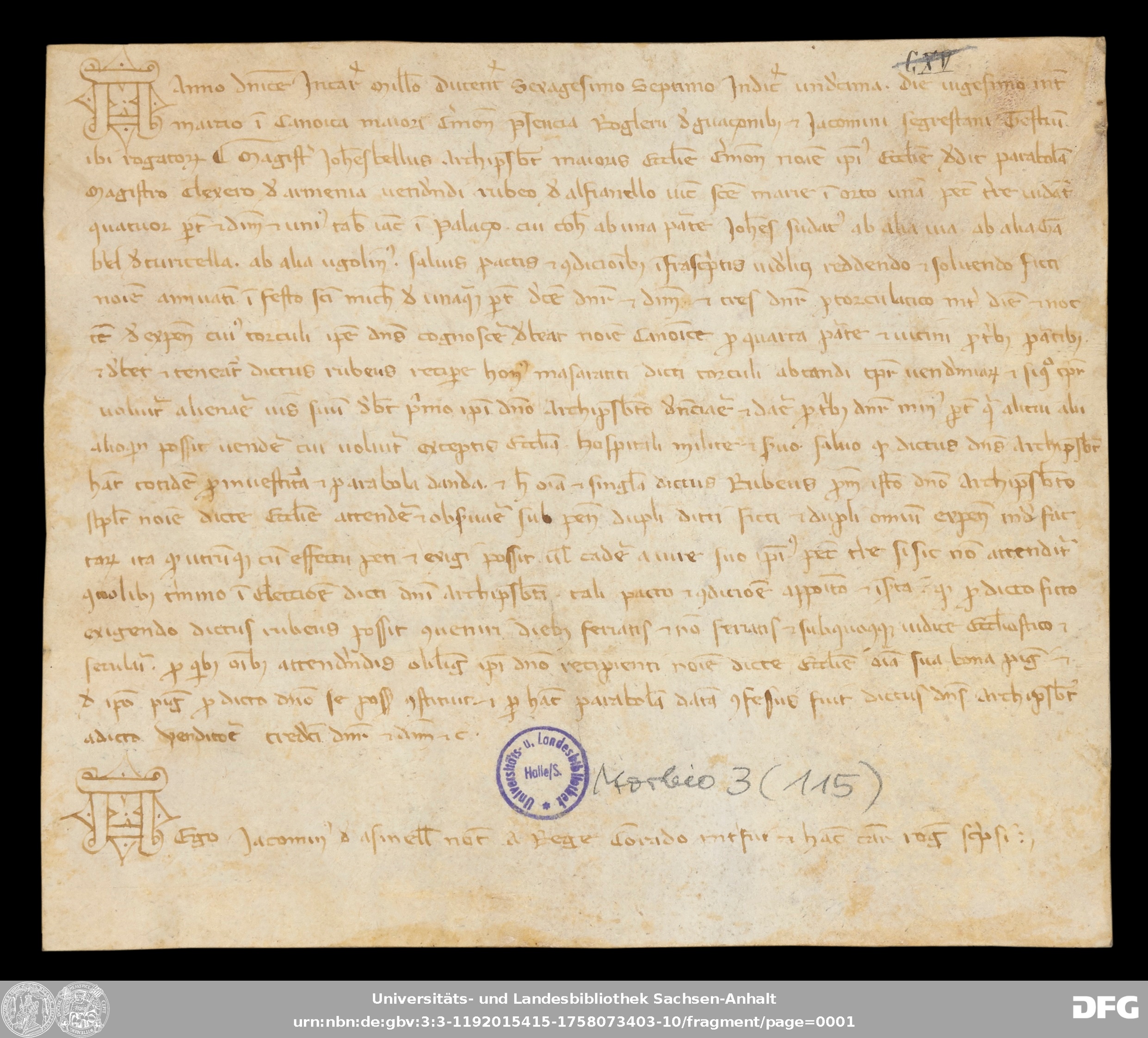 | Series: | Urkunden aus der Sammlung Morbio der Universitäts- und Landesbibliothek Sachsen-Anhalt Halle |