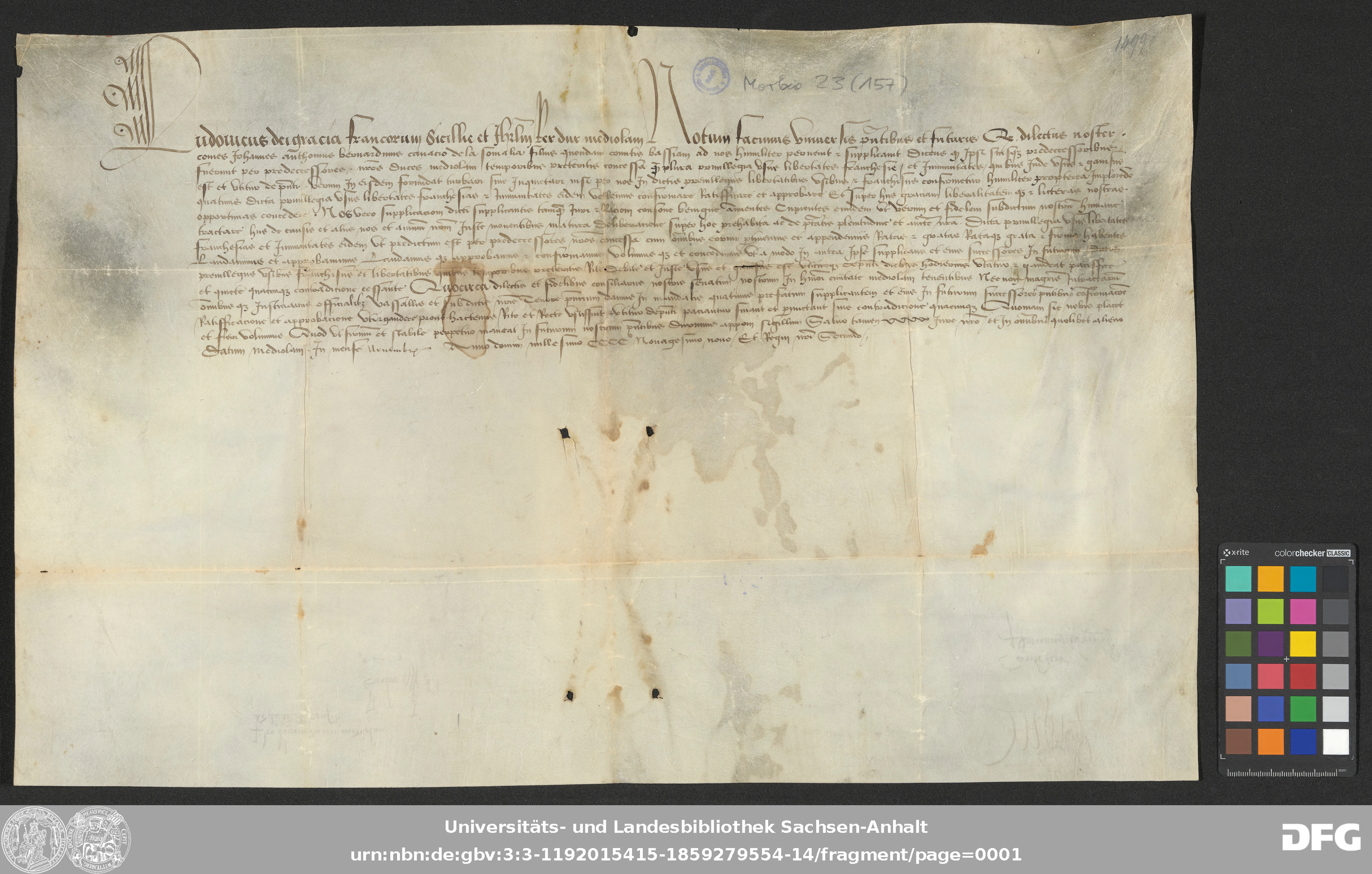 | Series: | Urkunden aus der Sammlung Morbio der Universitäts- und Landesbibliothek Sachsen-Anhalt Halle |
