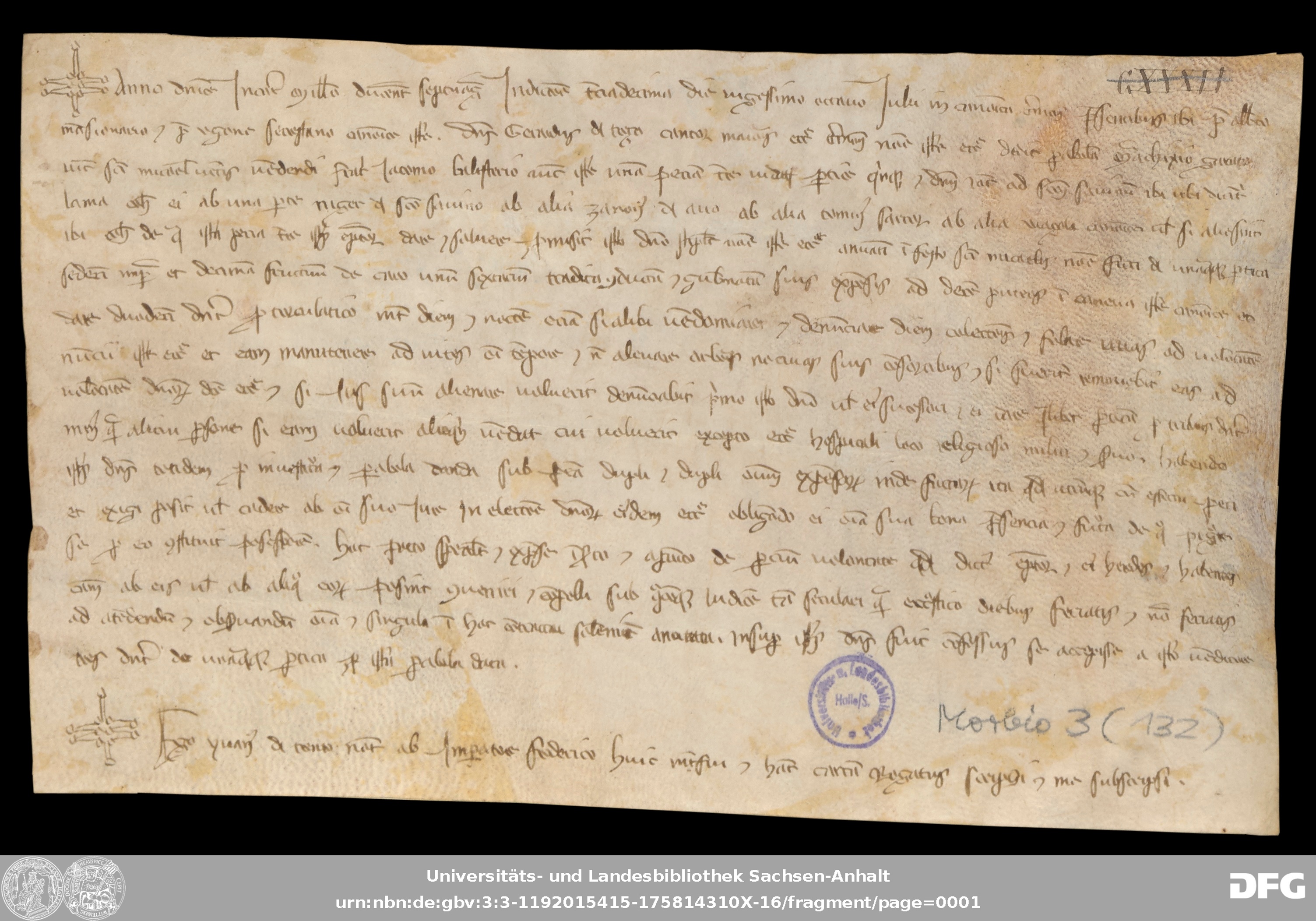 | Series: | Urkunden aus der Sammlung Morbio der Universitäts- und Landesbibliothek Sachsen-Anhalt Halle |