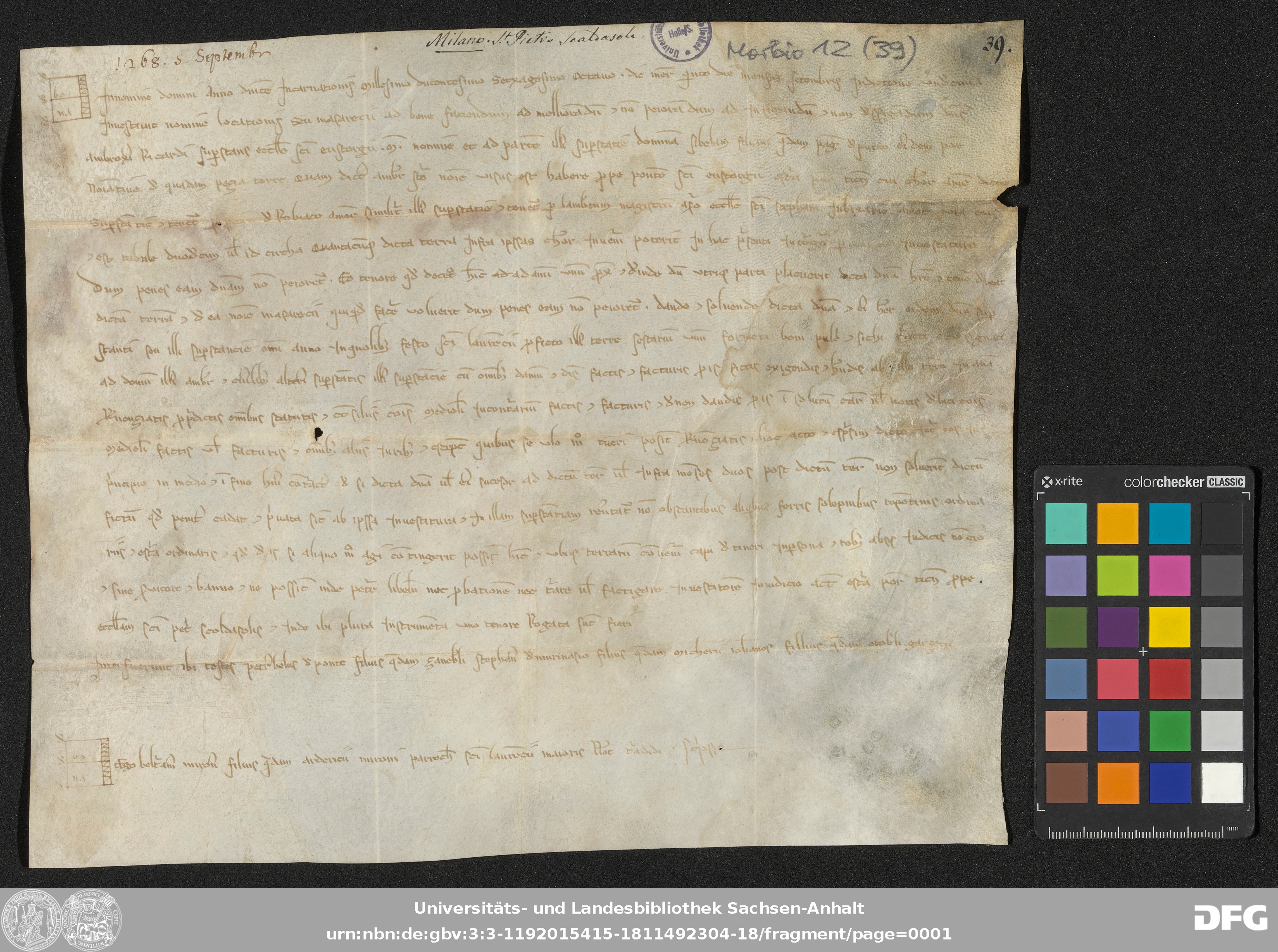 | Series: | Urkunden aus der Sammlung Morbio der Universitäts- und Landesbibliothek Sachsen-Anhalt Halle |