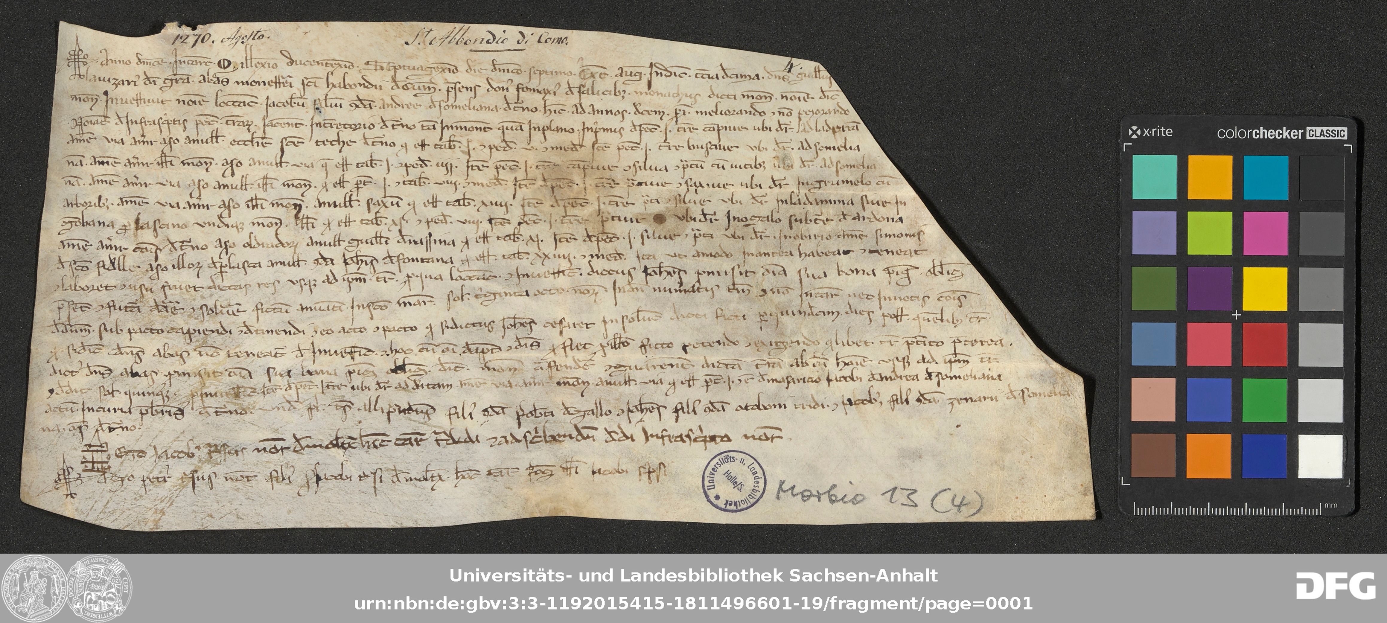 Series: Urkunden aus der Sammlung Morbio der Universitäts- und Landesbibliothek Sachsen-Anhalt Halle