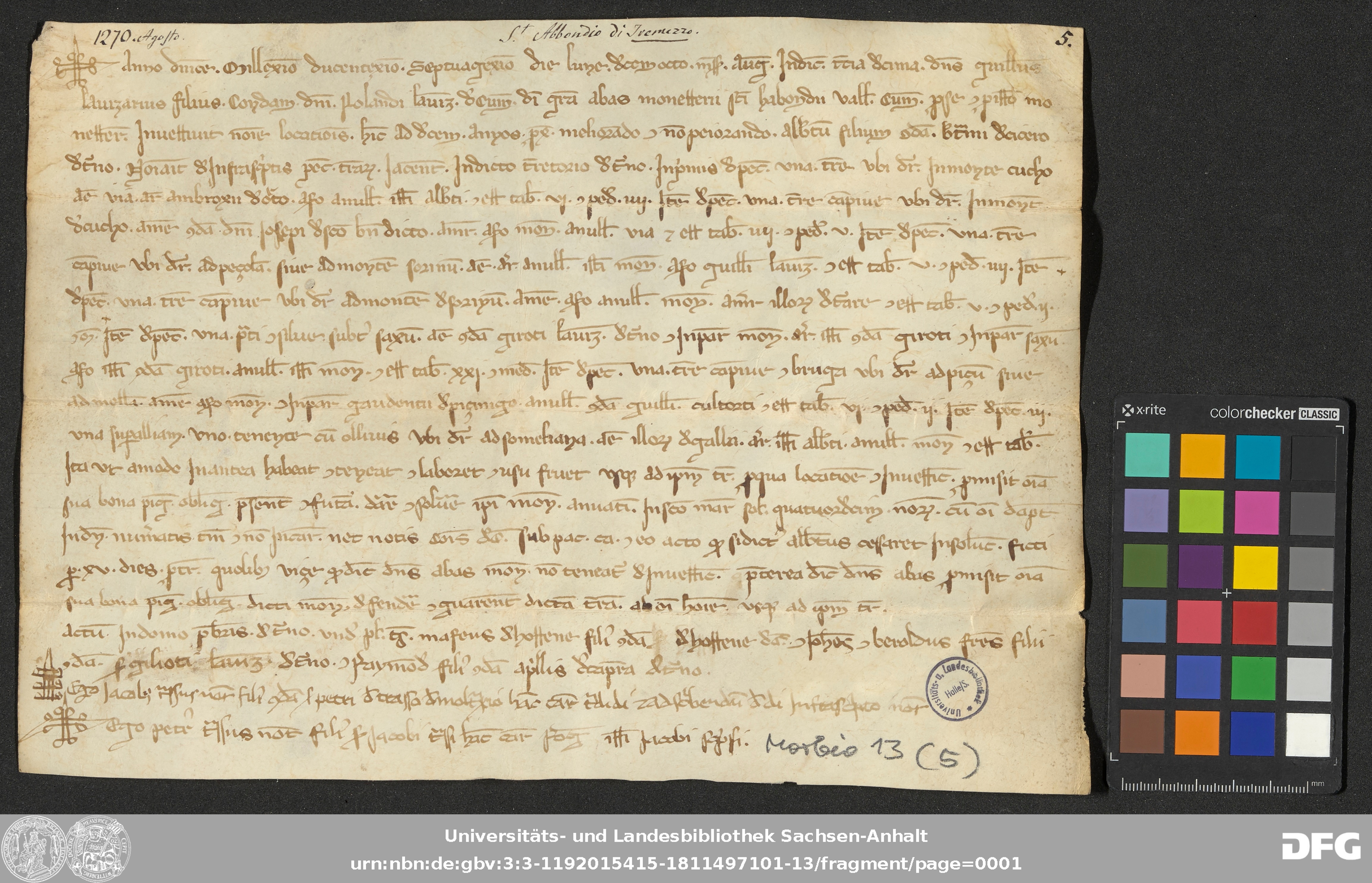 | Series: | Urkunden aus der Sammlung Morbio der Universitäts- und Landesbibliothek Sachsen-Anhalt Halle |