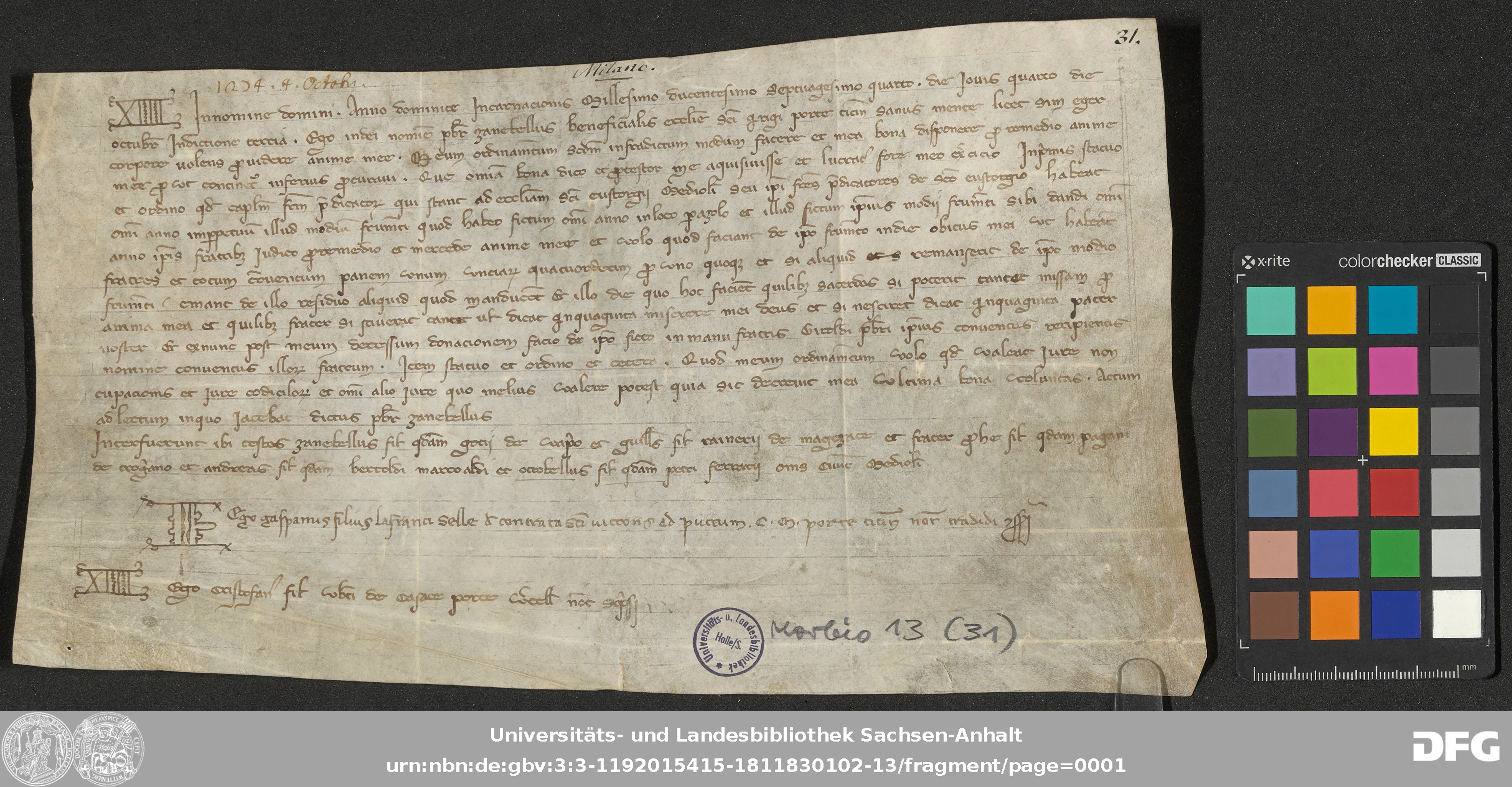 | Series: | Urkunden aus der Sammlung Morbio der Universitäts- und Landesbibliothek Sachsen-Anhalt Halle |