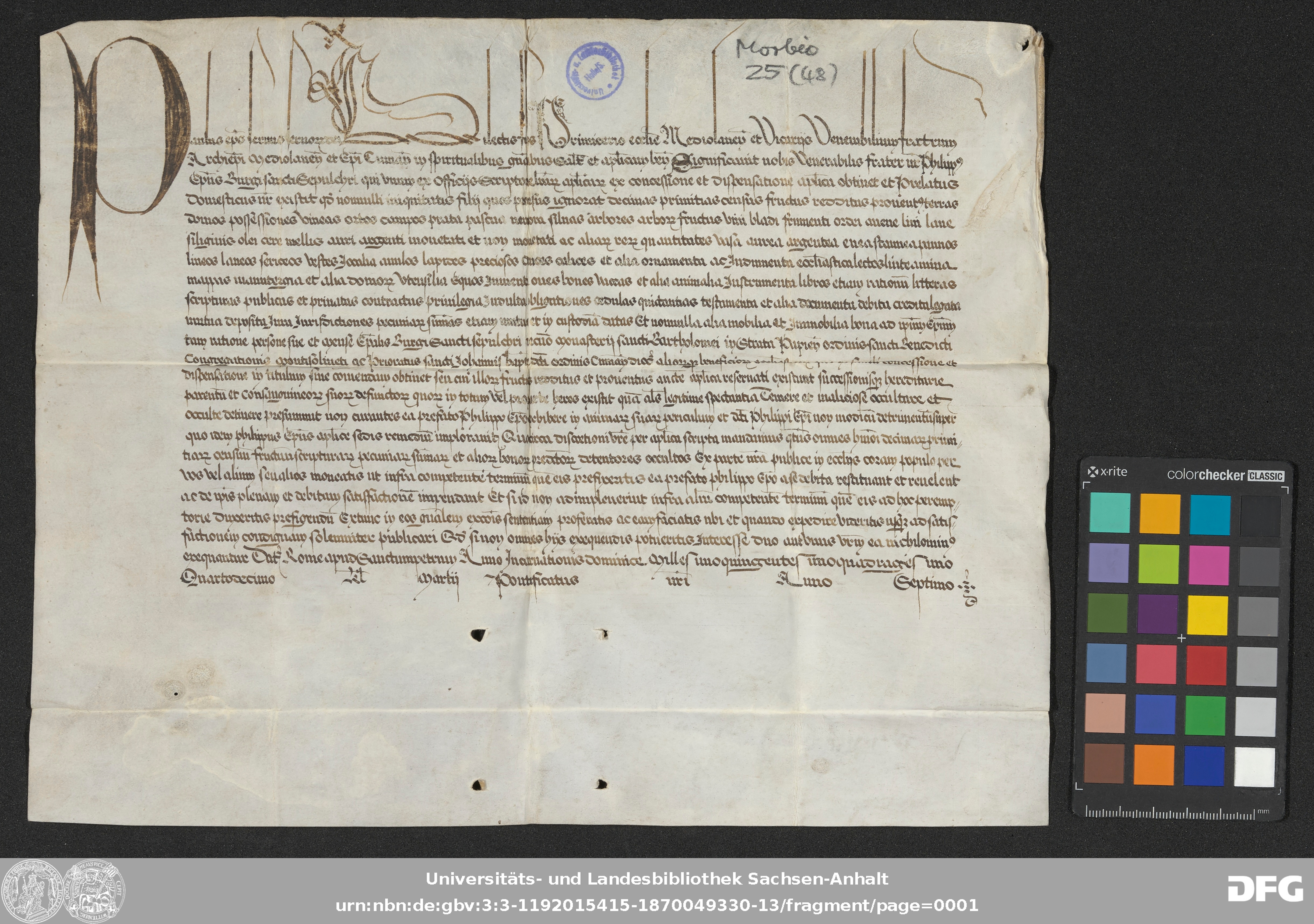 | Series: | Urkunden aus der Sammlung Morbio der Universitäts- und Landesbibliothek Sachsen-Anhalt Halle |