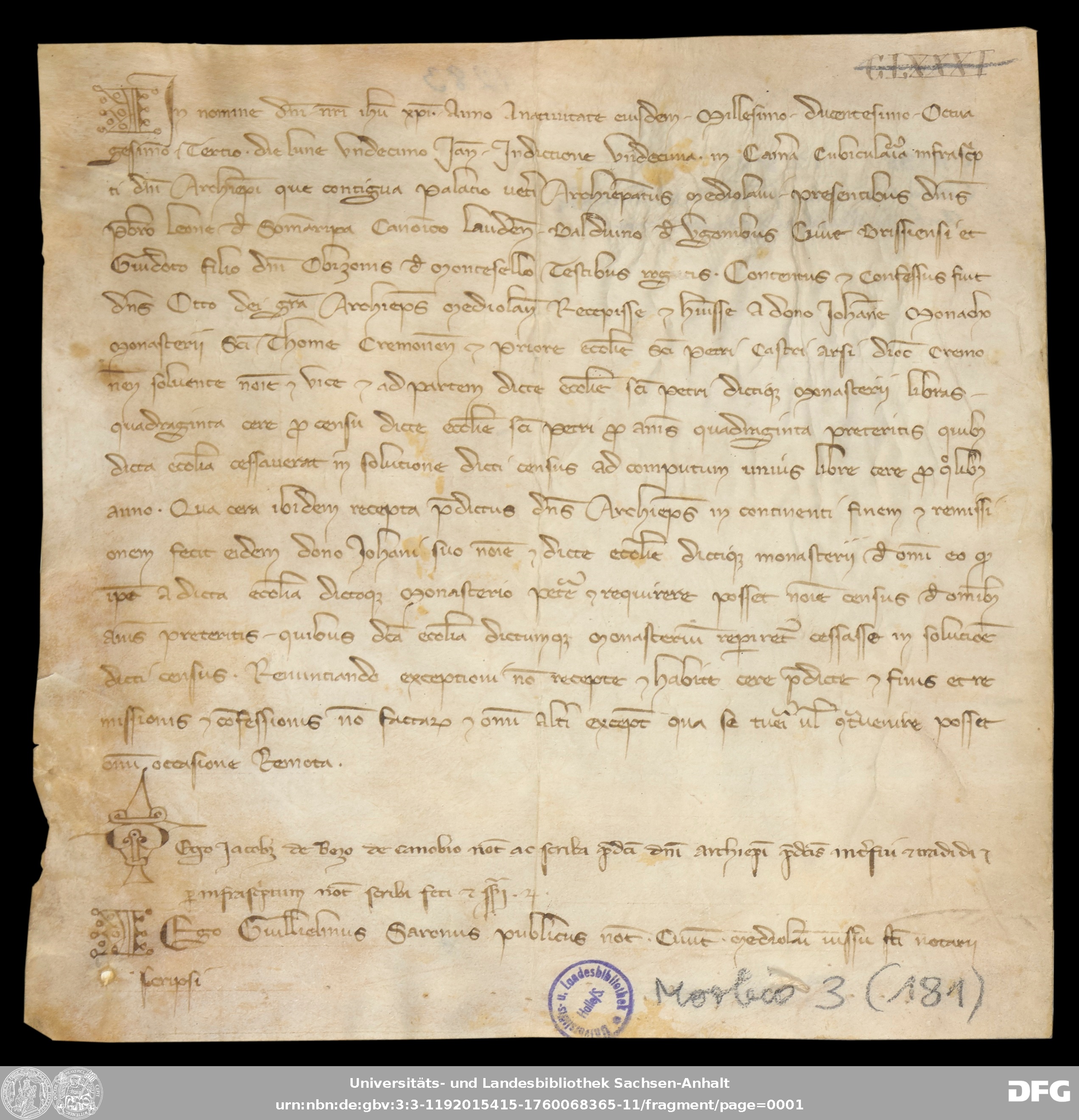 | Series: | Urkunden aus der Sammlung Morbio der Universitäts- und Landesbibliothek Sachsen-Anhalt Halle |