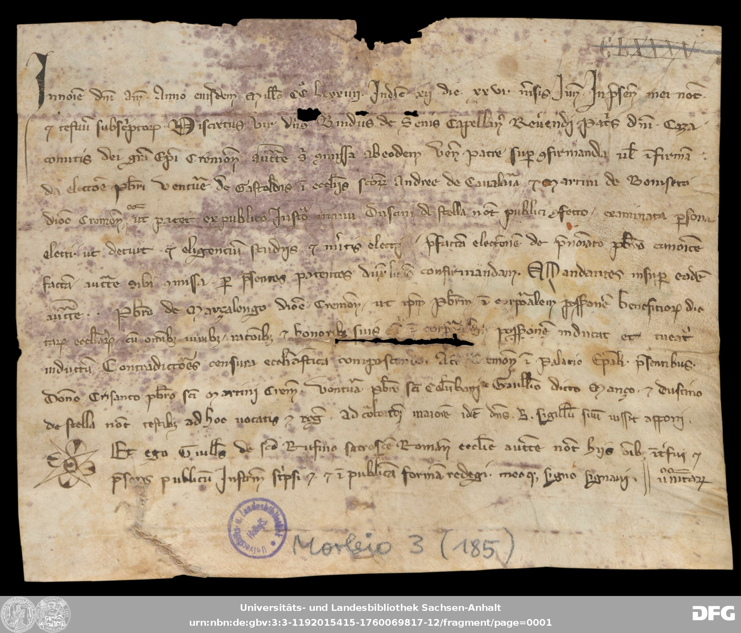 | Series: | Urkunden aus der Sammlung Morbio der Universitäts- und Landesbibliothek Sachsen-Anhalt Halle |