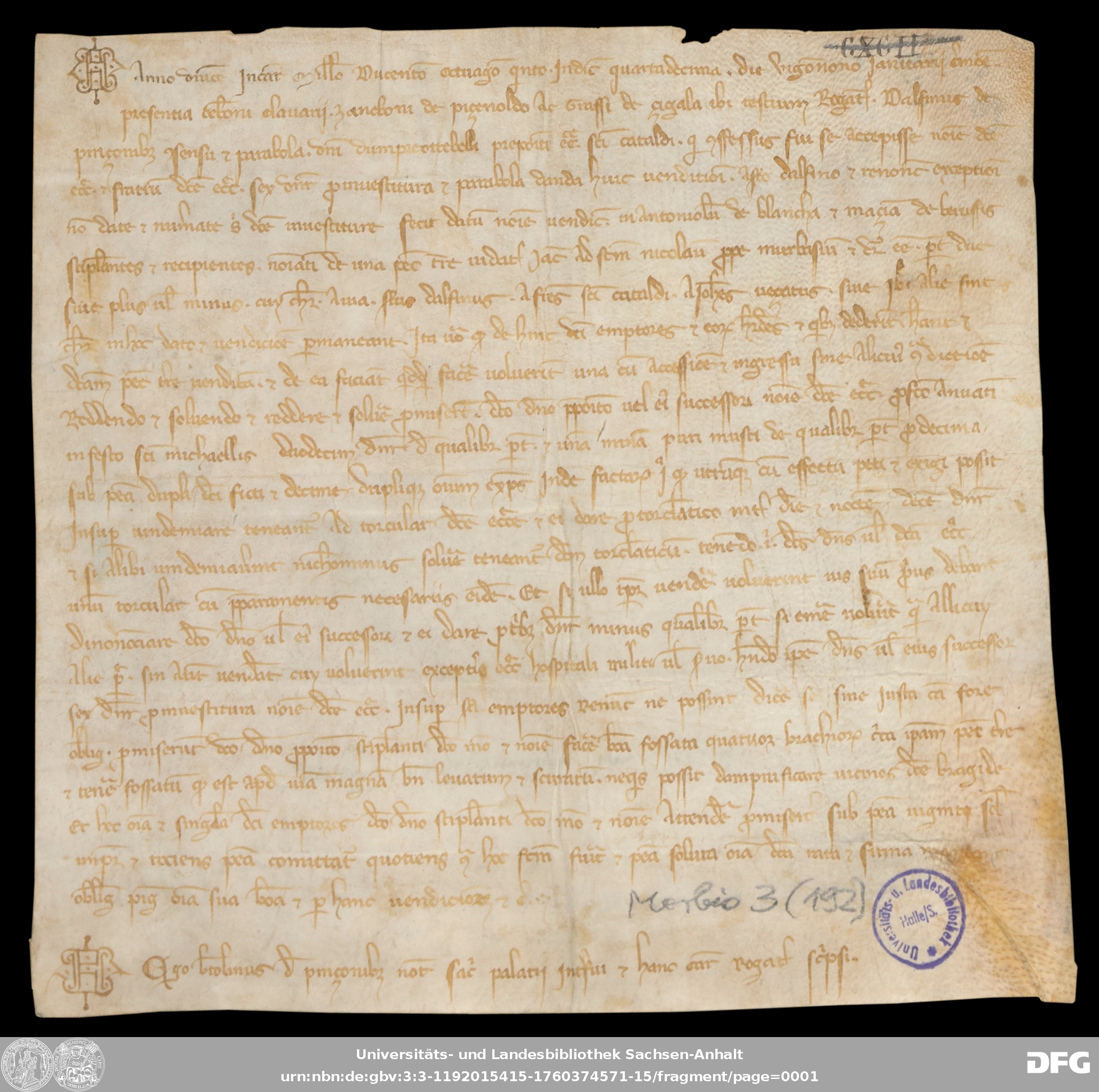 | Series: | Urkunden aus der Sammlung Morbio der Universitäts- und Landesbibliothek Sachsen-Anhalt Halle |