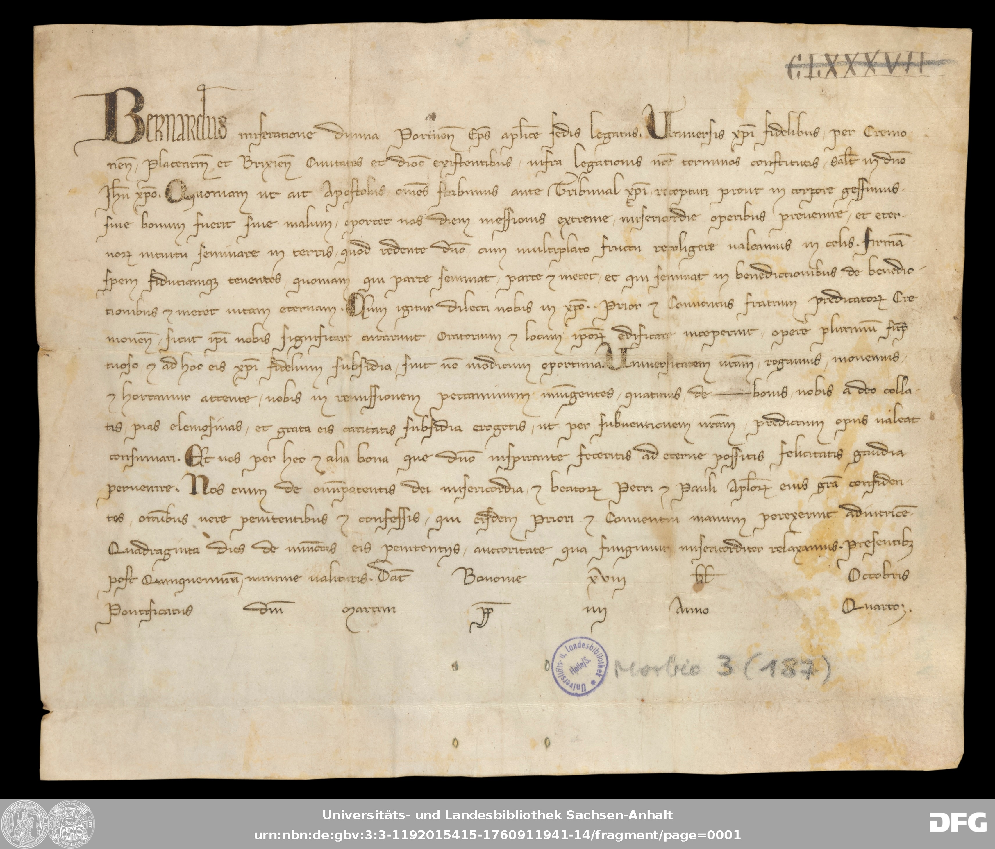 | Series: | Urkunden aus der Sammlung Morbio der Universitäts- und Landesbibliothek Sachsen-Anhalt Halle |