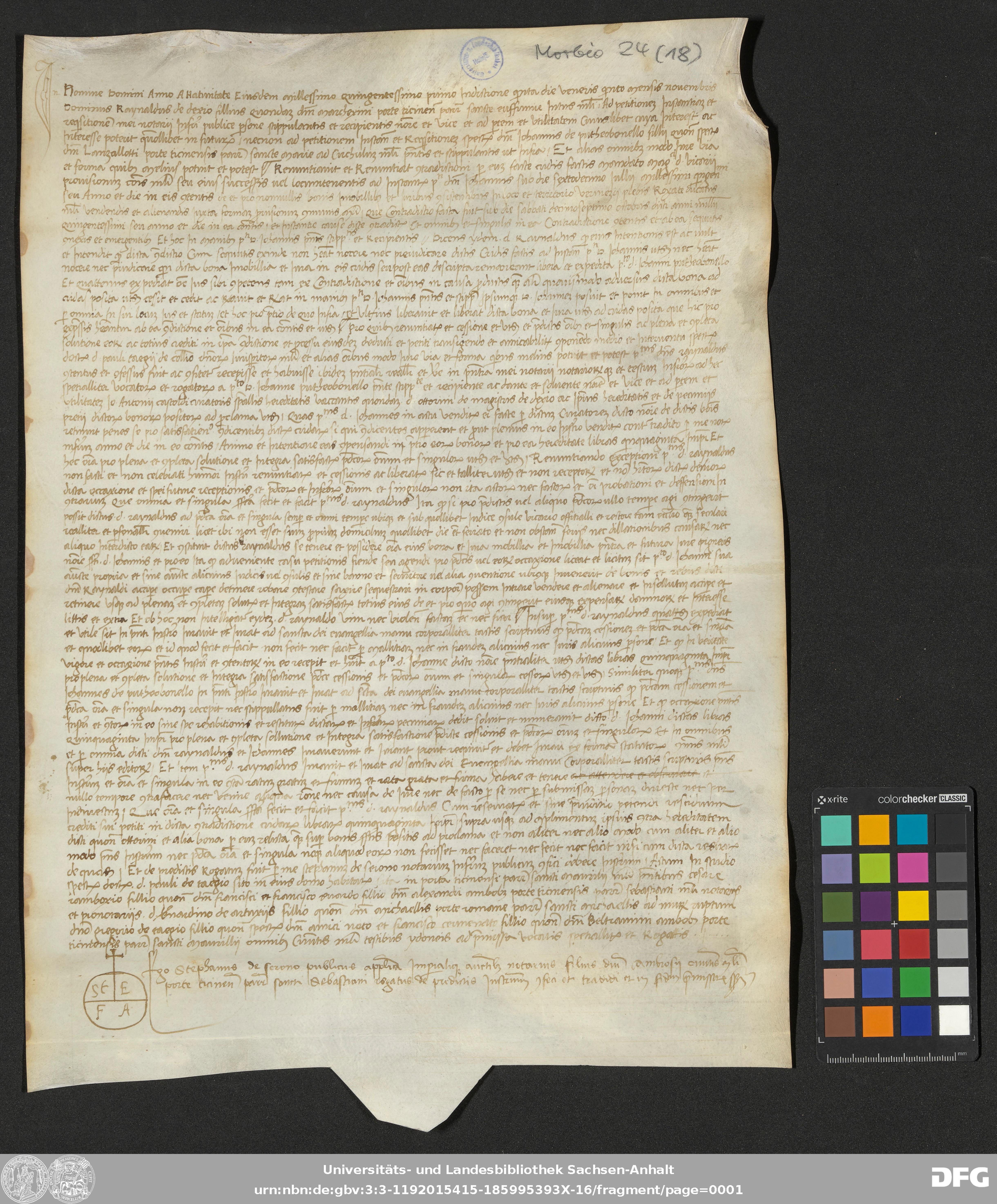 | Annotations: | Handschrift DE-3, GND 2024680-8, Signatur: Morbio 24 (18) Die Illustration ist: Notarszeichen Überlieferungsart: original Beschreibstoff: Pergament Erhaltungszustand: gut Handschrift Urkunde |