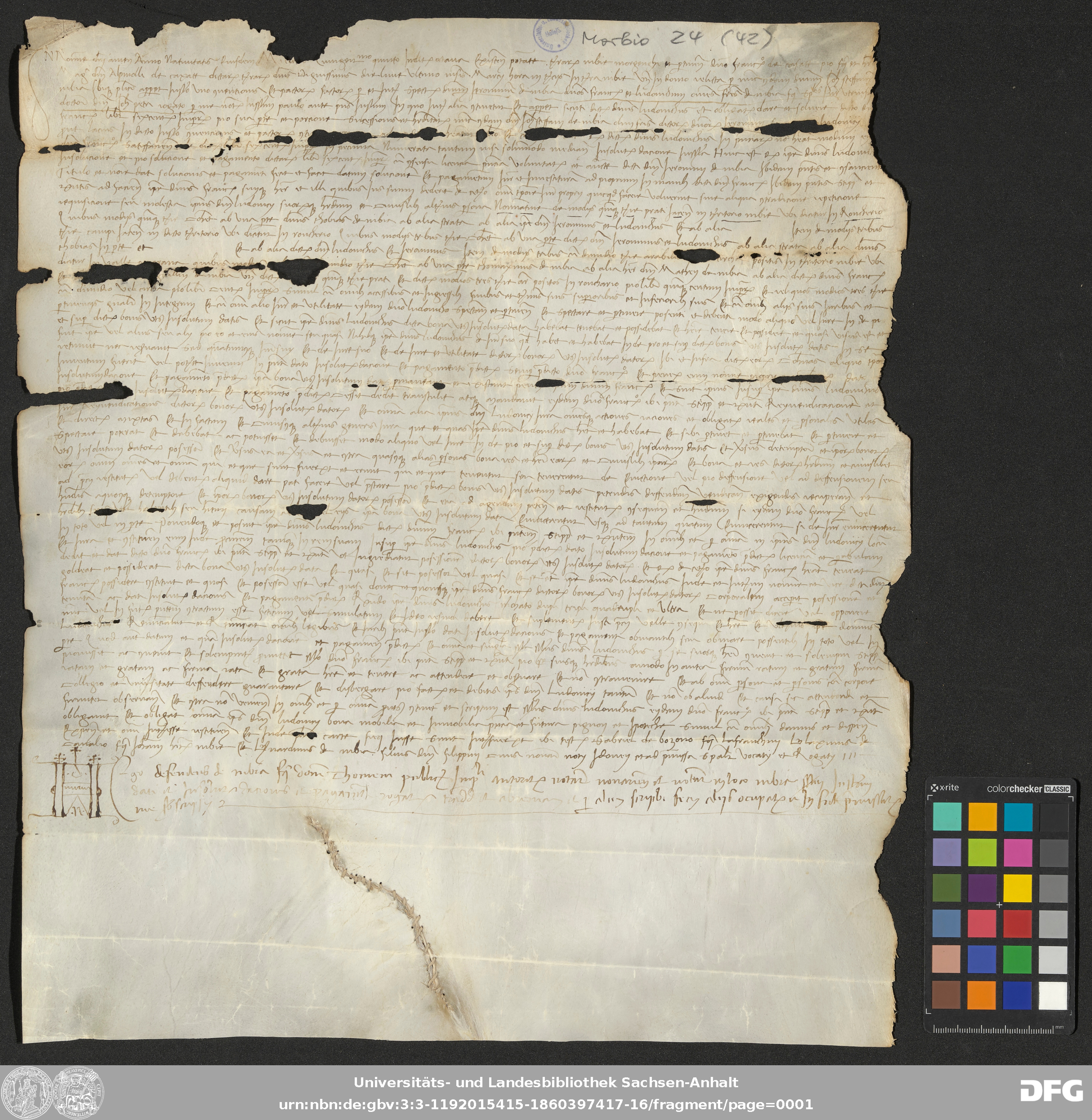 | Annotations: | Handschrift DE-3, GND 2024680-8, Signatur: Morbio 24 (42) Die Illustration ist: Notarszeichen Überlieferungsart: original Beschreibstoff: Pergament Erhaltungszustand: schlecht Textverlust durch mechanische Beschädigung Handschrift Urkunde |