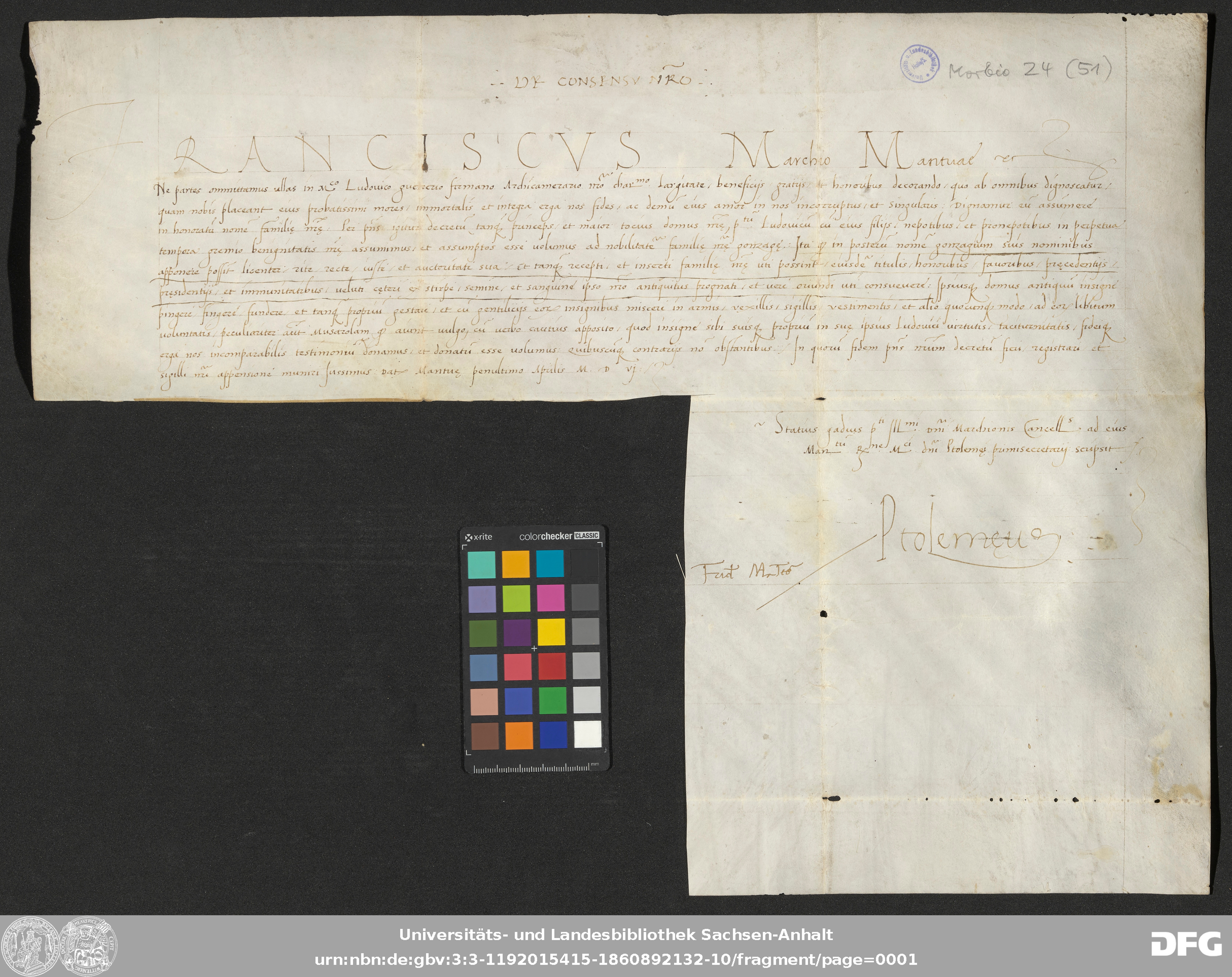 Serie: Urkunden aus der Sammlung Morbio der Universitäts- und Landesbibliothek Sachsen-Anhalt Halle