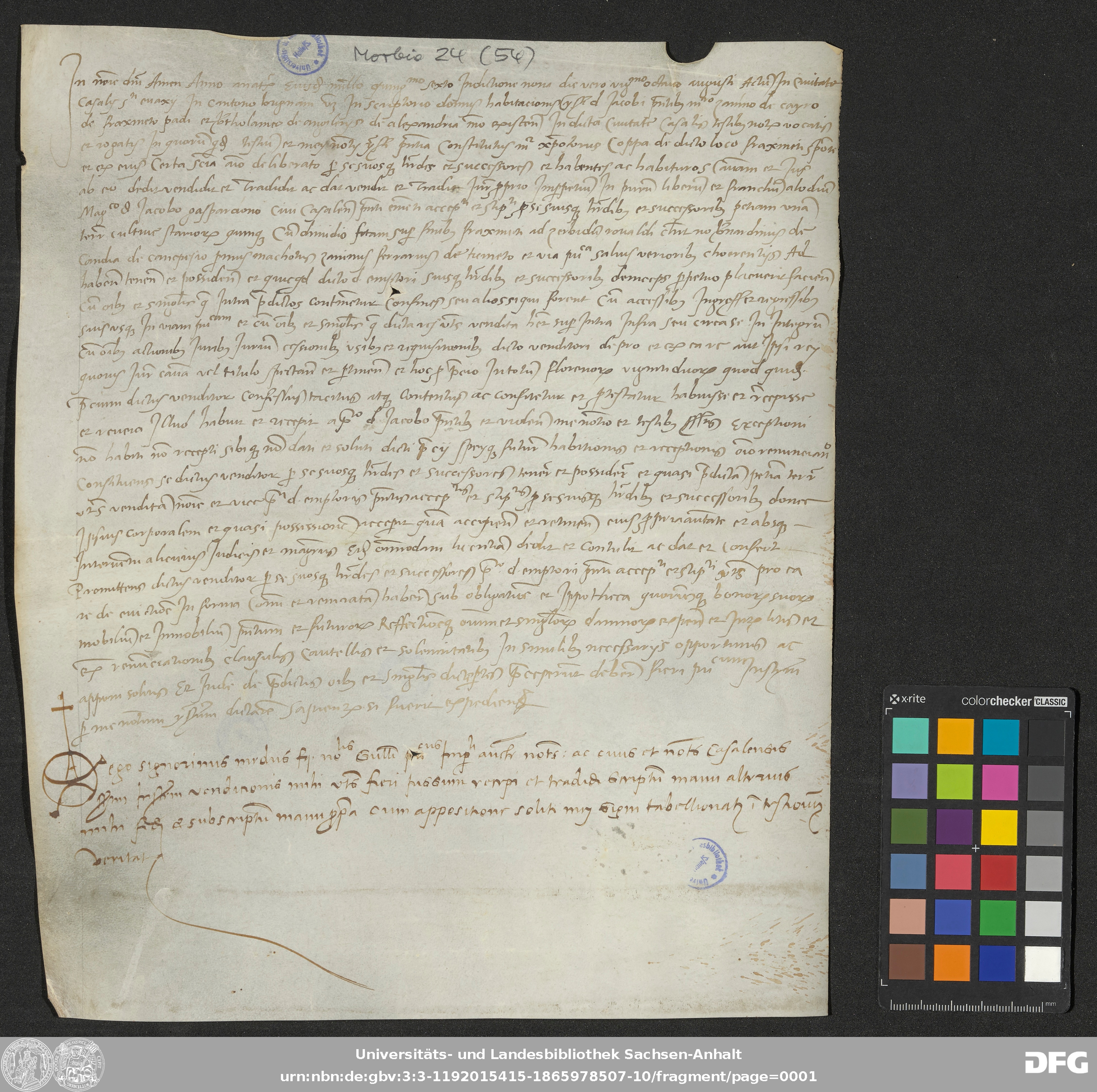 | Vorlage der Digitalisierung: | Universitäts- und Landesbibliothek Sachsen-Anhalt, Morbio 24 (54) |
