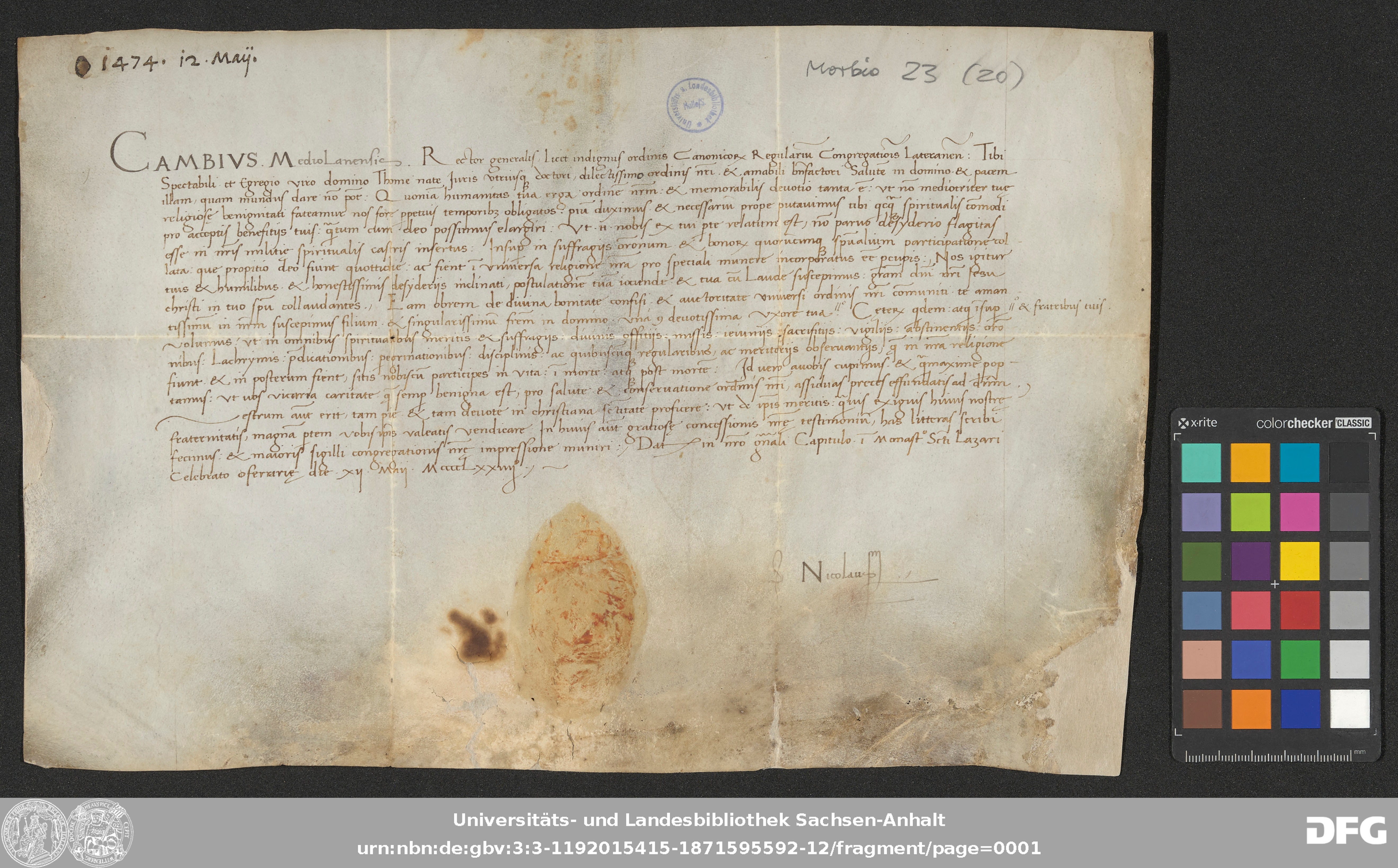 | Series: | Urkunden aus der Sammlung Morbio der Universitäts- und Landesbibliothek Sachsen-Anhalt Halle |