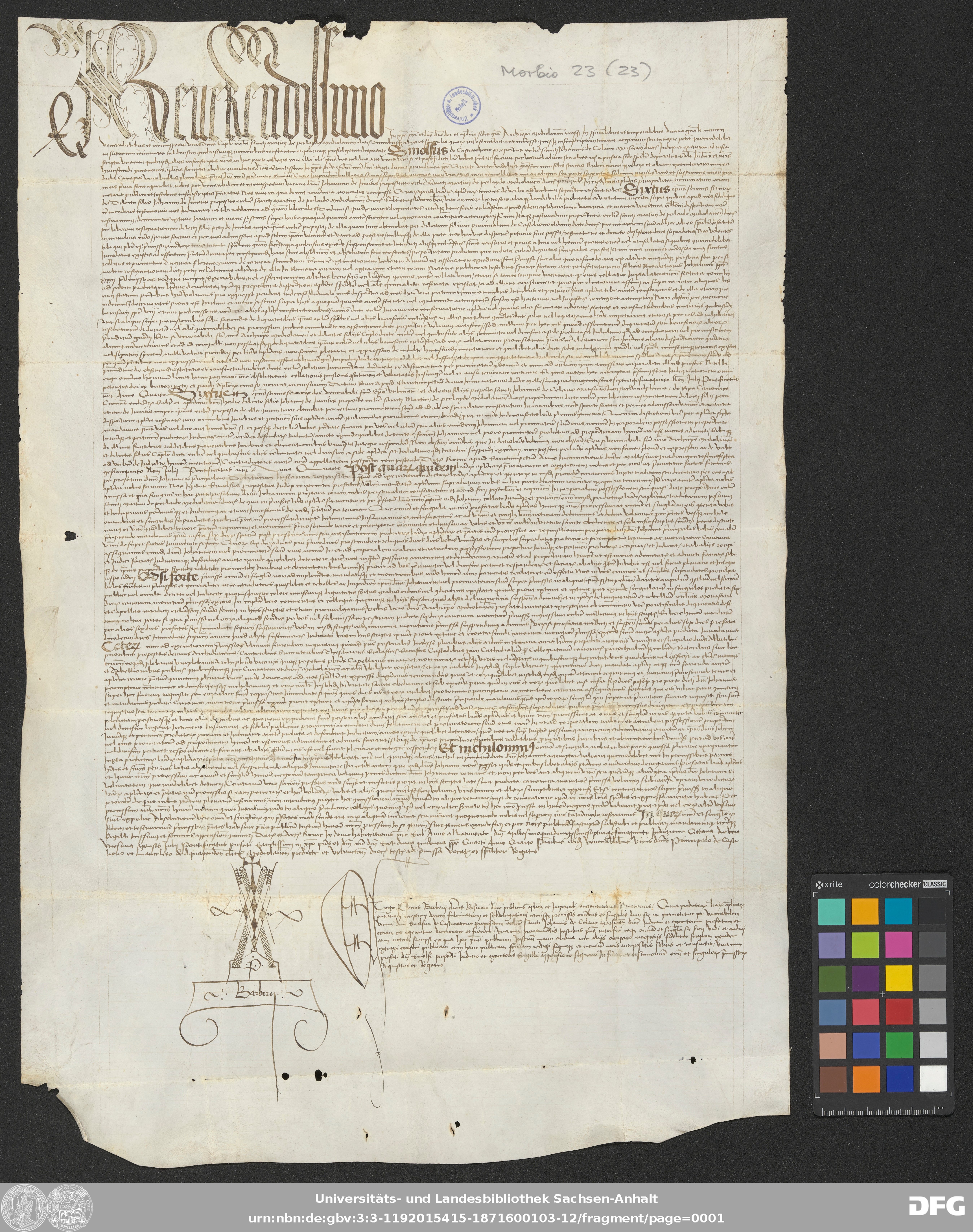 Serie: Urkunden aus der Sammlung Morbio der Universitäts- und Landesbibliothek Sachsen-Anhalt Halle