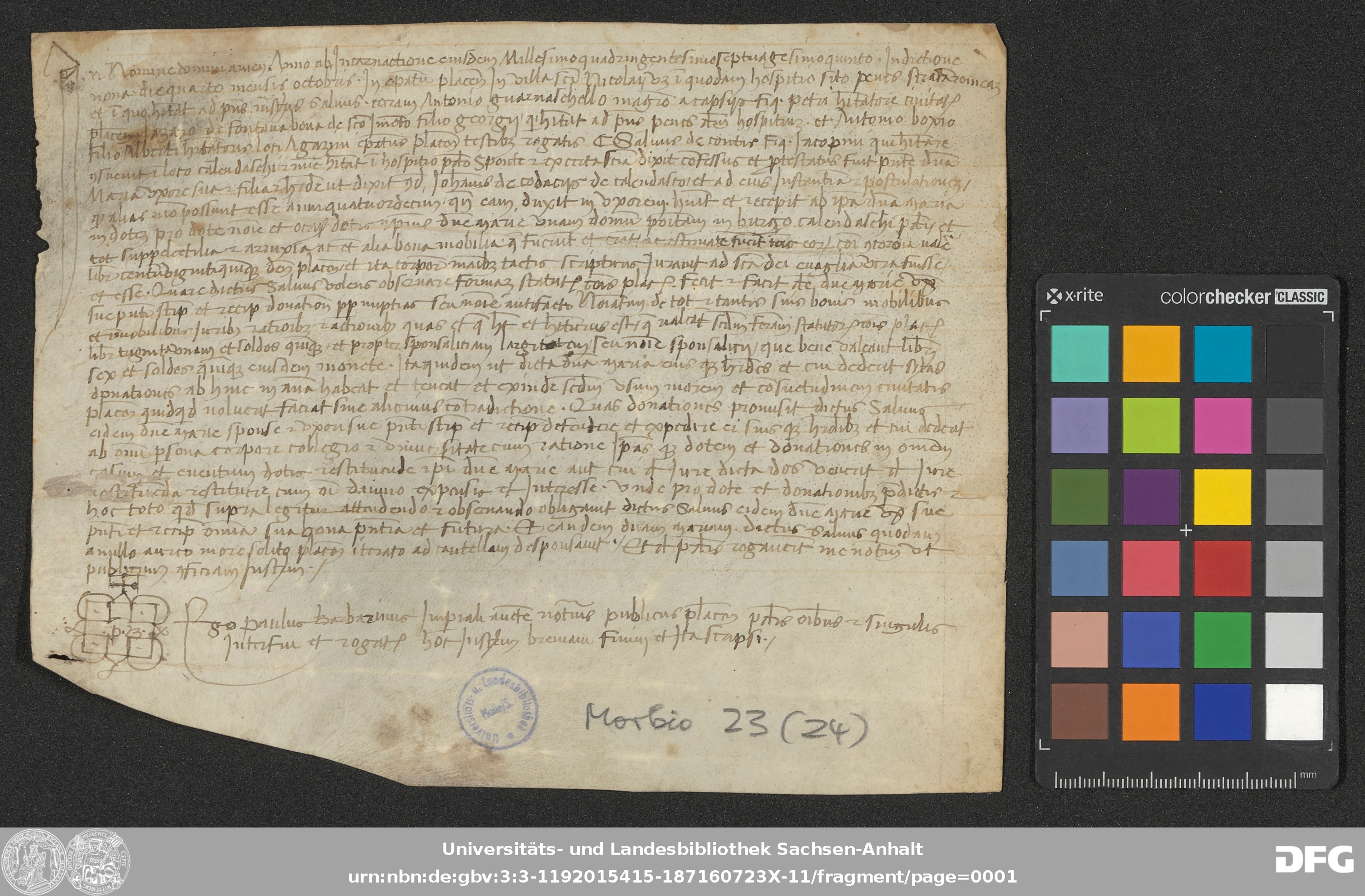 Serie: Urkunden aus der Sammlung Morbio der Universitäts- und Landesbibliothek Sachsen-Anhalt Halle