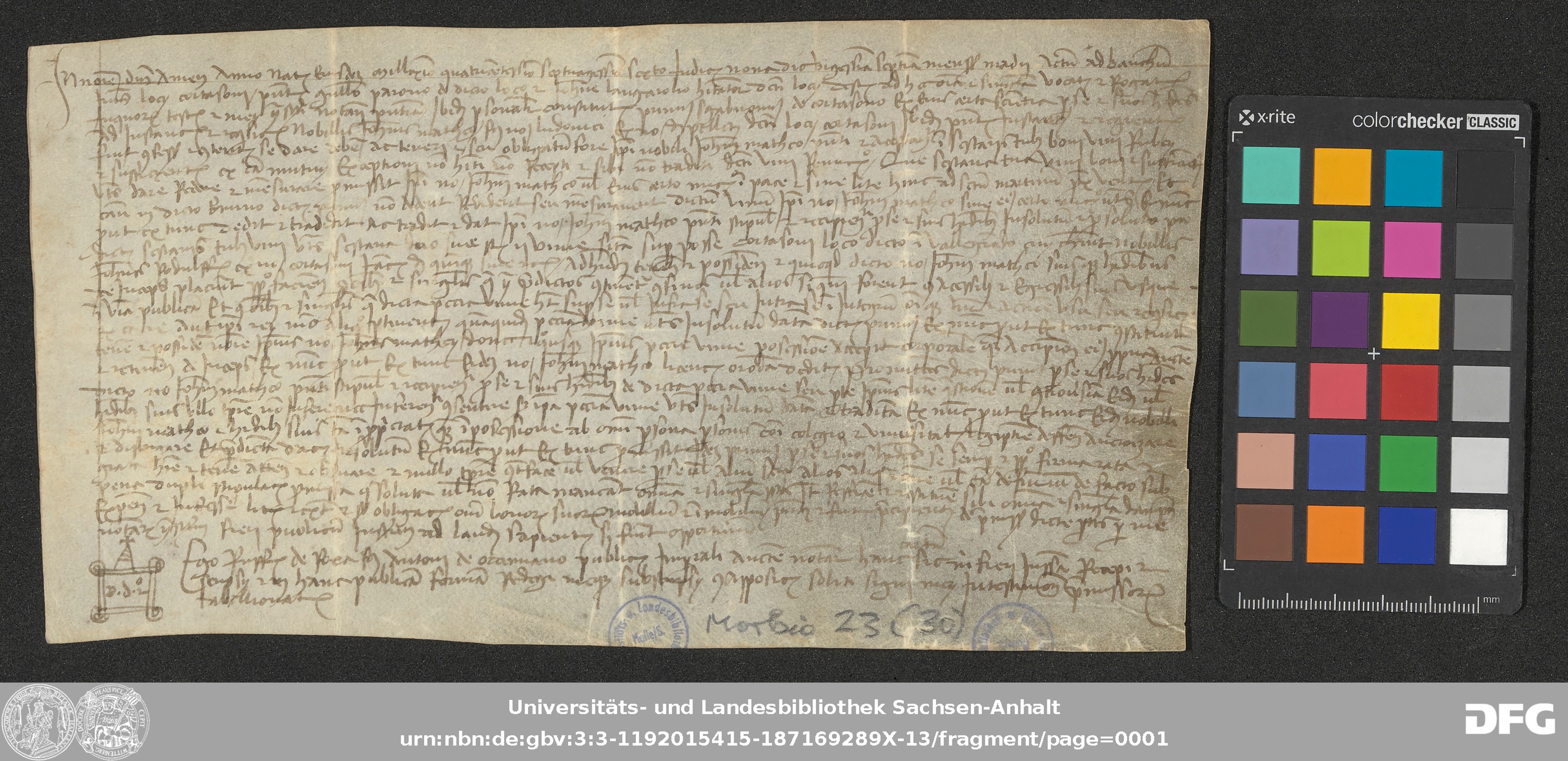 Serie: Urkunden aus der Sammlung Morbio der Universitäts- und Landesbibliothek Sachsen-Anhalt Halle