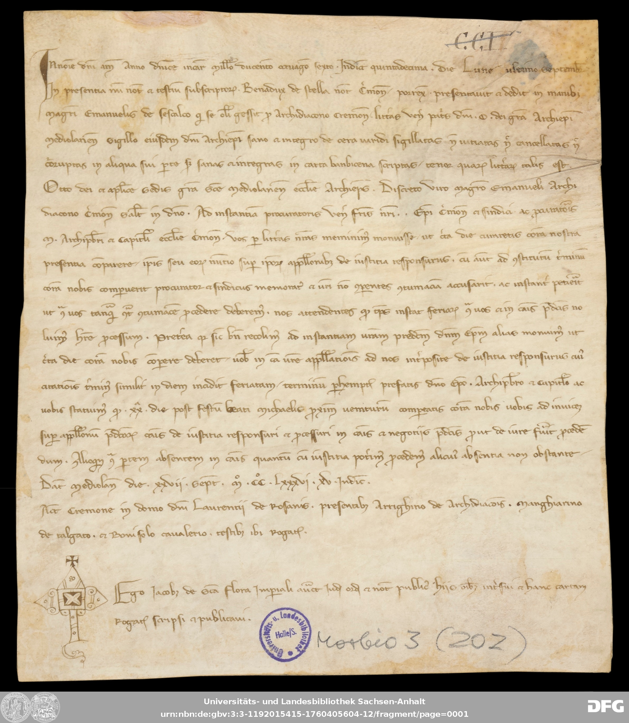 | Serie: | Urkunden aus der Sammlung Morbio der Universitäts- und Landesbibliothek Sachsen-Anhalt Halle |