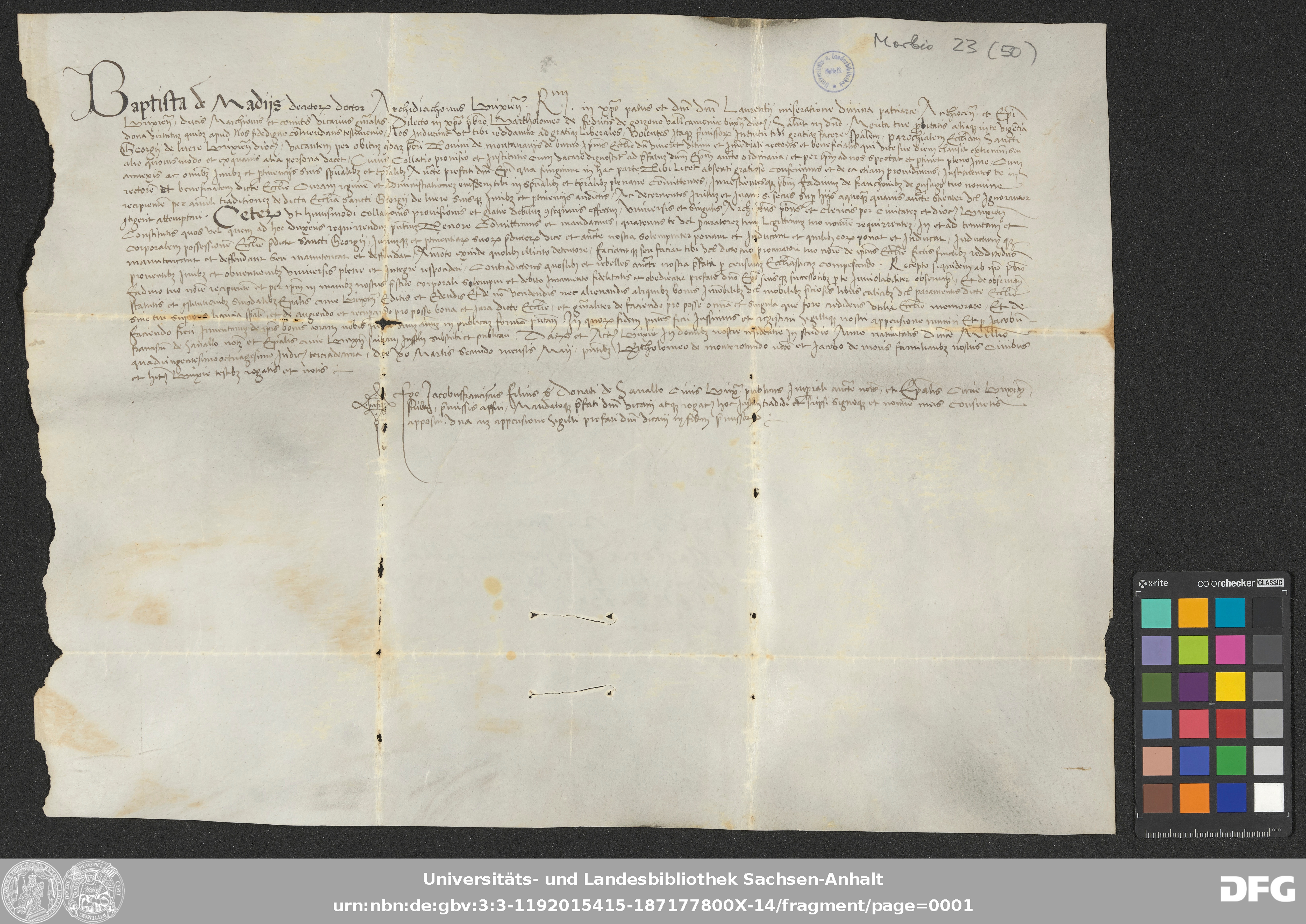 | Series: | Urkunden aus der Sammlung Morbio der Universitäts- und Landesbibliothek Sachsen-Anhalt Halle |