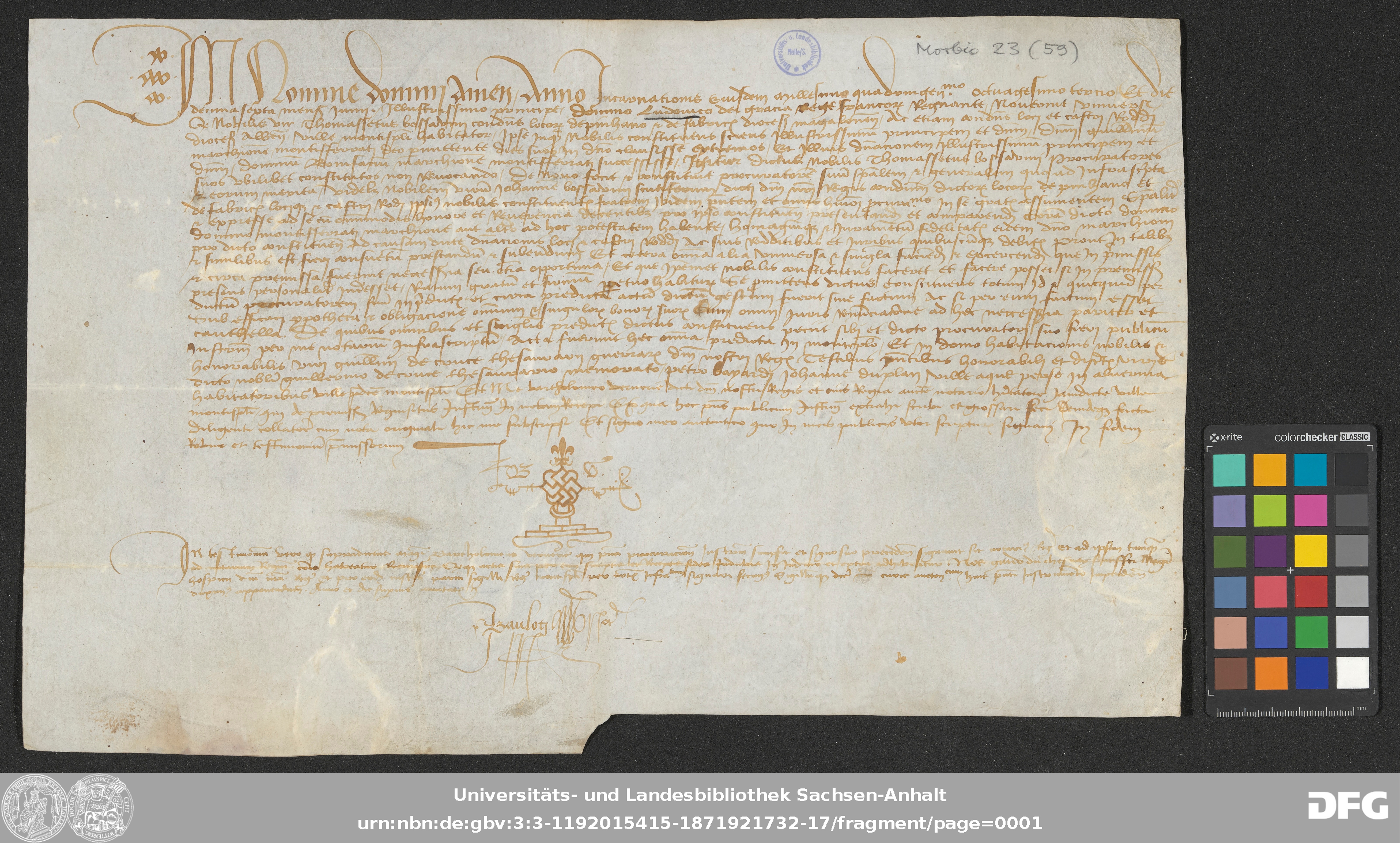 | Serie: | Urkunden aus der Sammlung Morbio der Universitäts- und Landesbibliothek Sachsen-Anhalt Halle |