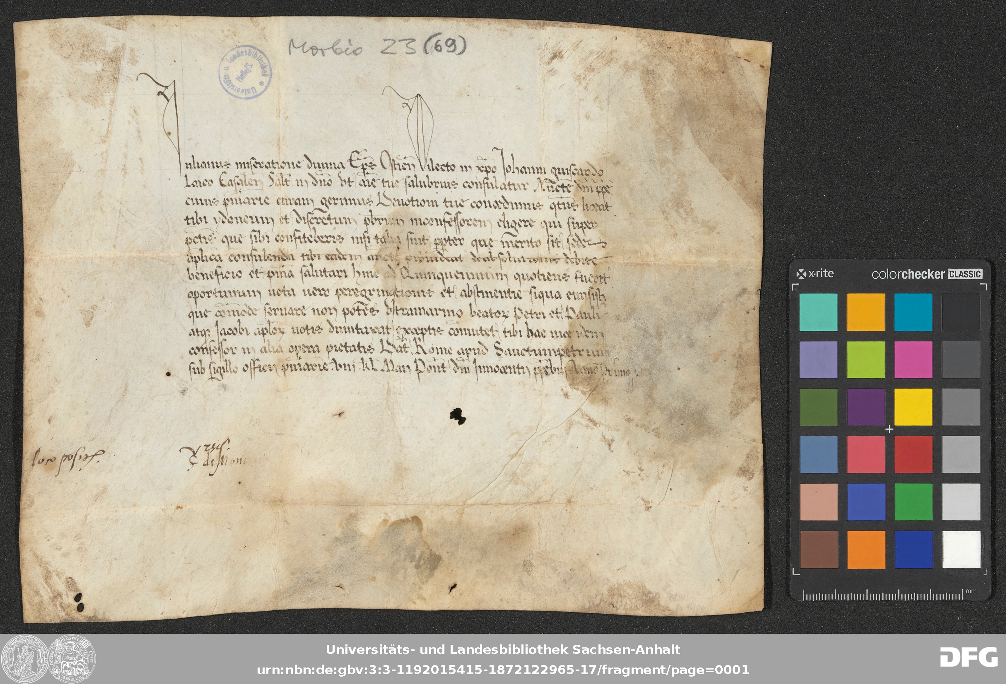 | Vorlage der Digitalisierung: | Universitäts- und Landesbibliothek Sachsen-Anhalt, Morbio 23 (69) |