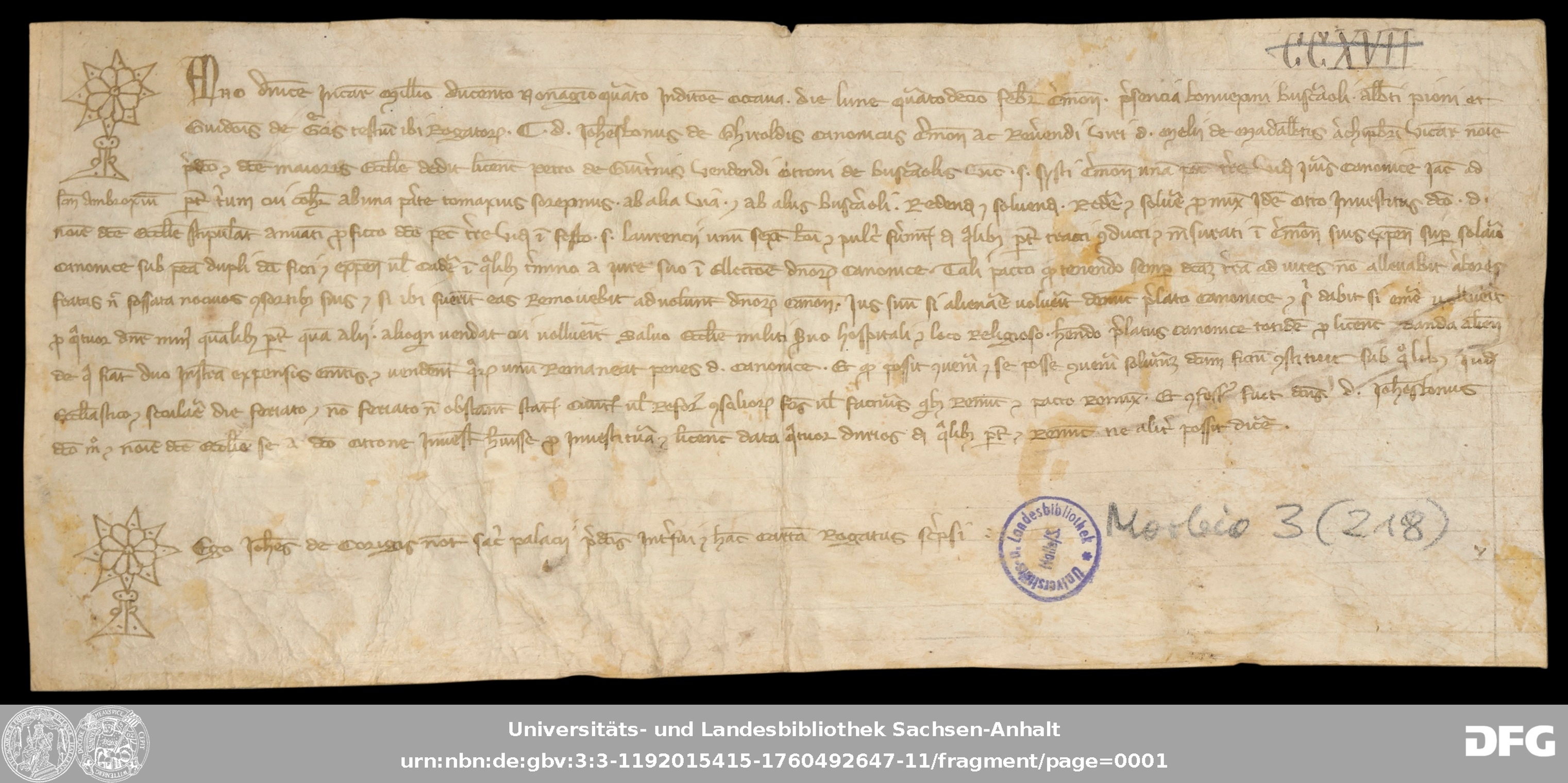 | Series: | Urkunden aus der Sammlung Morbio der Universitäts- und Landesbibliothek Sachsen-Anhalt Halle |