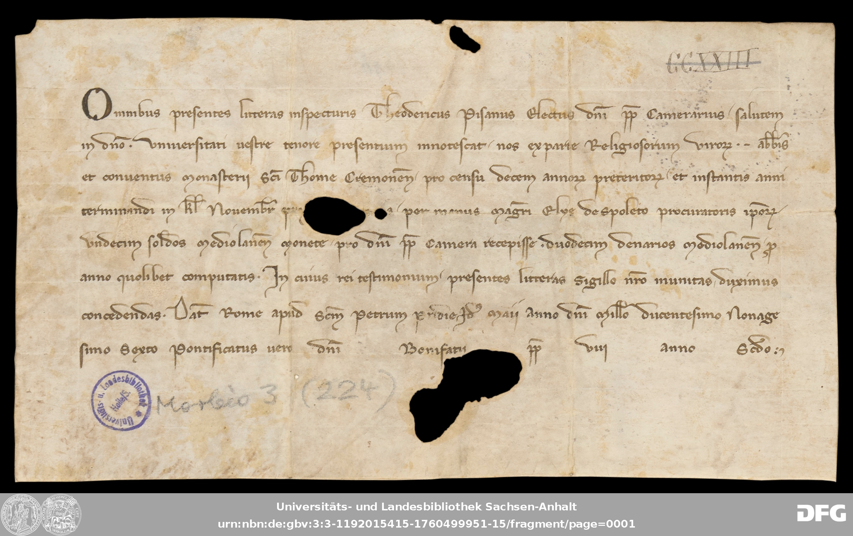 | Serie: | Urkunden aus der Sammlung Morbio der Universitäts- und Landesbibliothek Sachsen-Anhalt Halle |