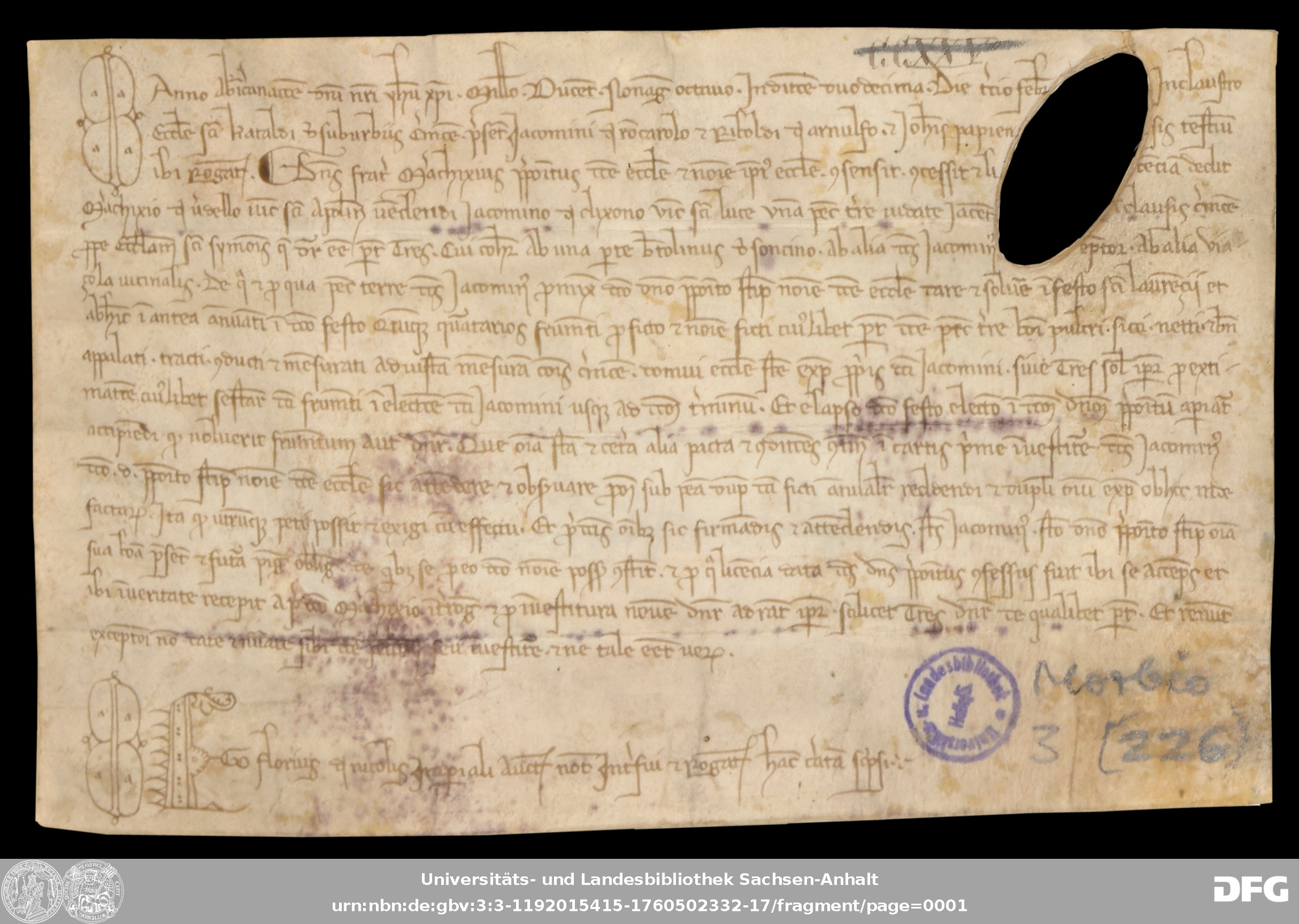 | Serie: | Urkunden aus der Sammlung Morbio der Universitäts- und Landesbibliothek Sachsen-Anhalt Halle |