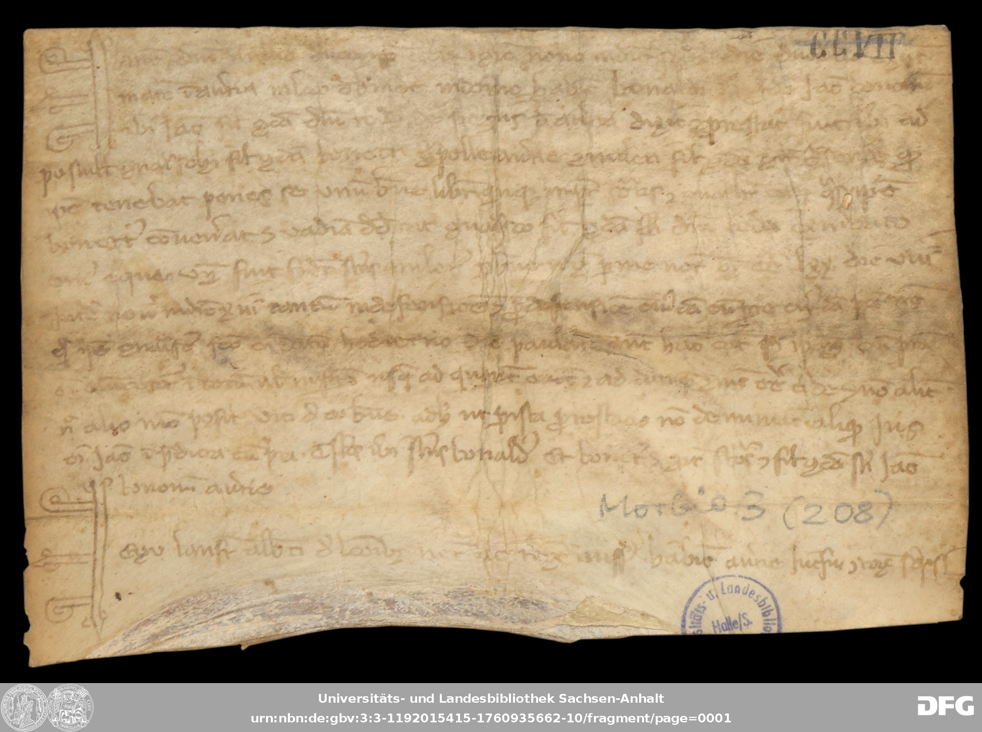 | Vorlage der Digitalisierung: | Universitäts- und Landesbibliothek Sachsen-Anhalt, Morbio 3 (208) |
