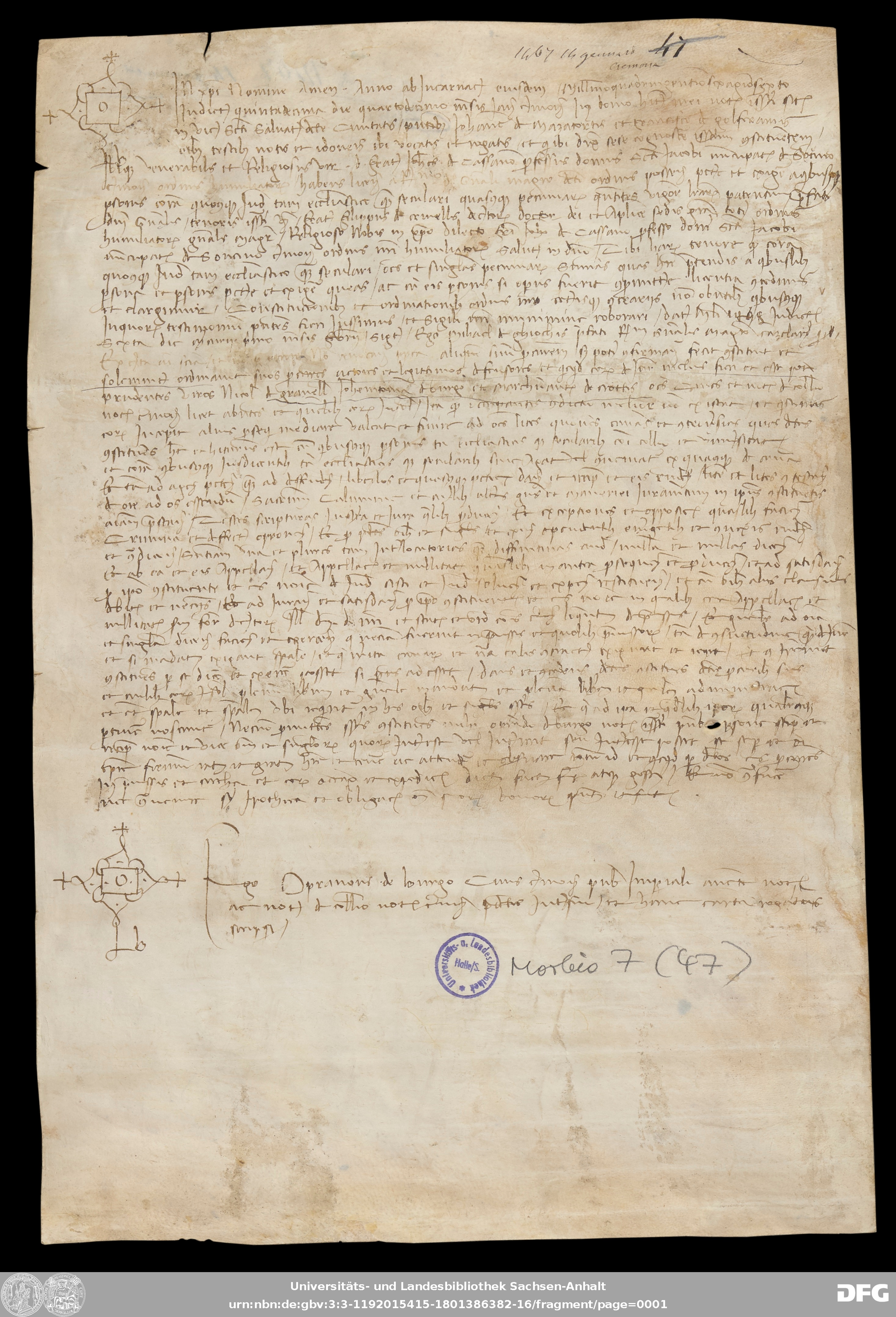 | Series: | Urkunden aus der Sammlung Morbio der Universitäts- und Landesbibliothek Sachsen-Anhalt Halle |
