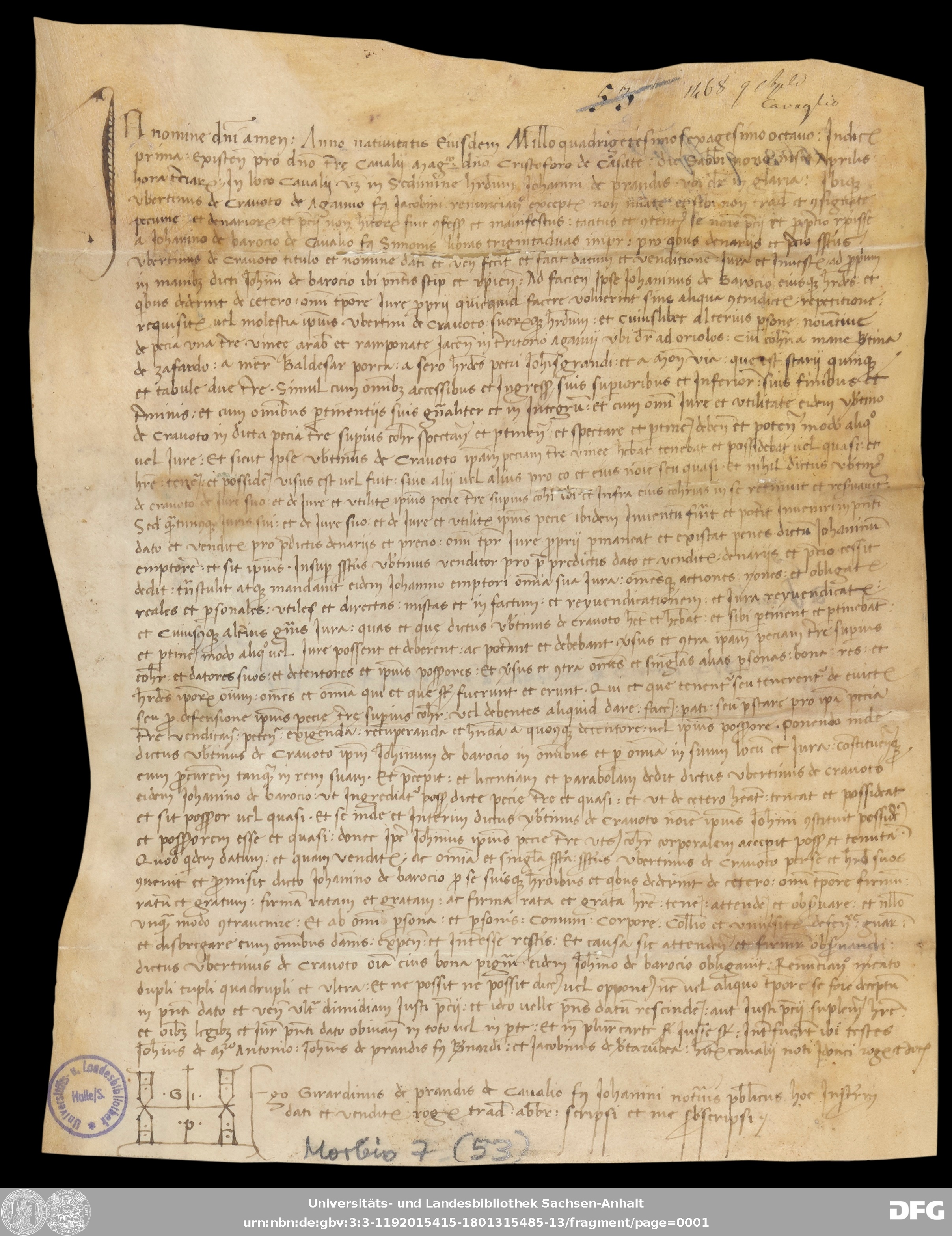 | Series: | Urkunden aus der Sammlung Morbio der Universitäts- und Landesbibliothek Sachsen-Anhalt Halle |