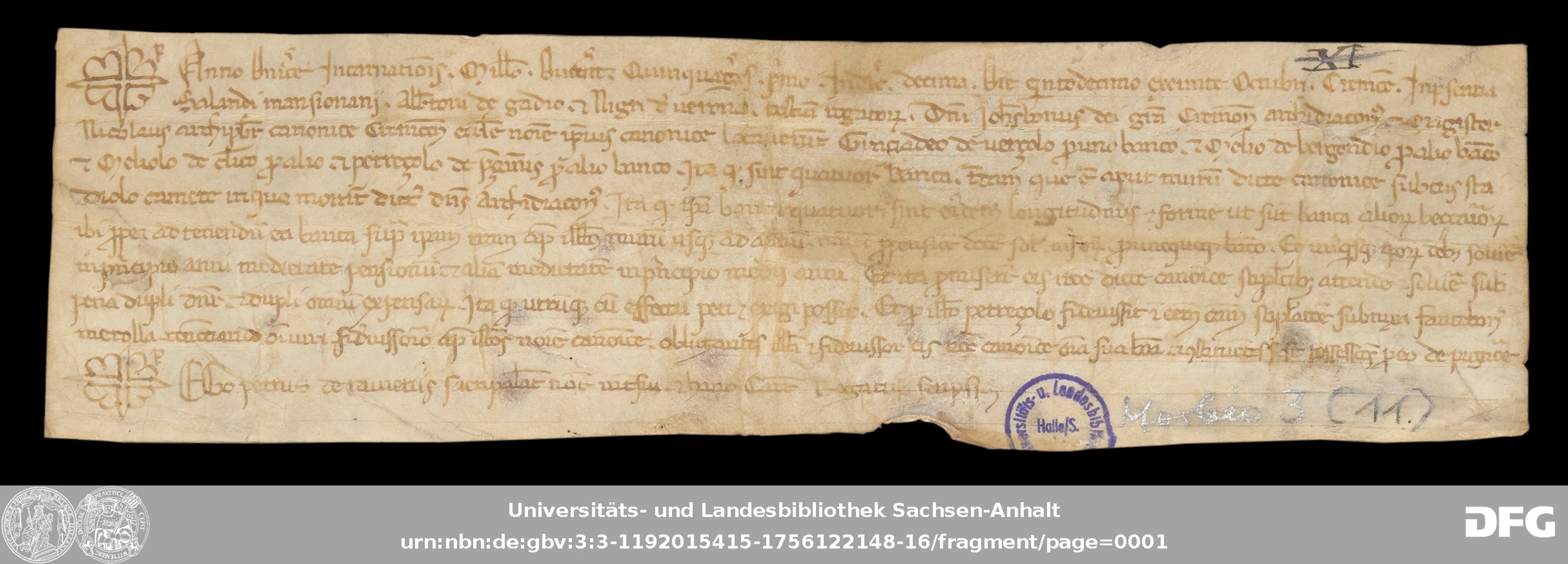 | Series: | Urkunden aus der Sammlung Morbio der Universitäts- und Landesbibliothek Sachsen-Anhalt Halle |